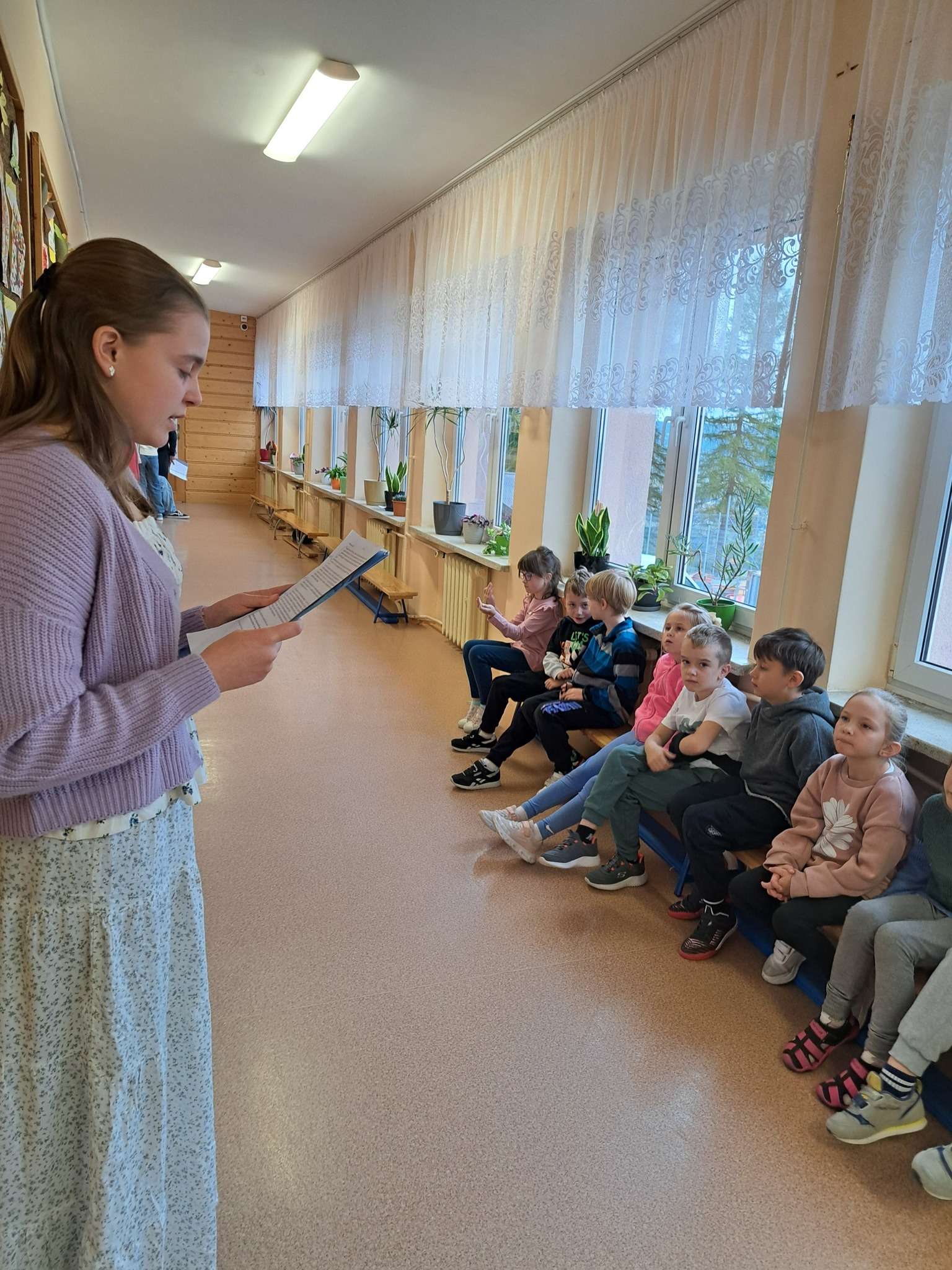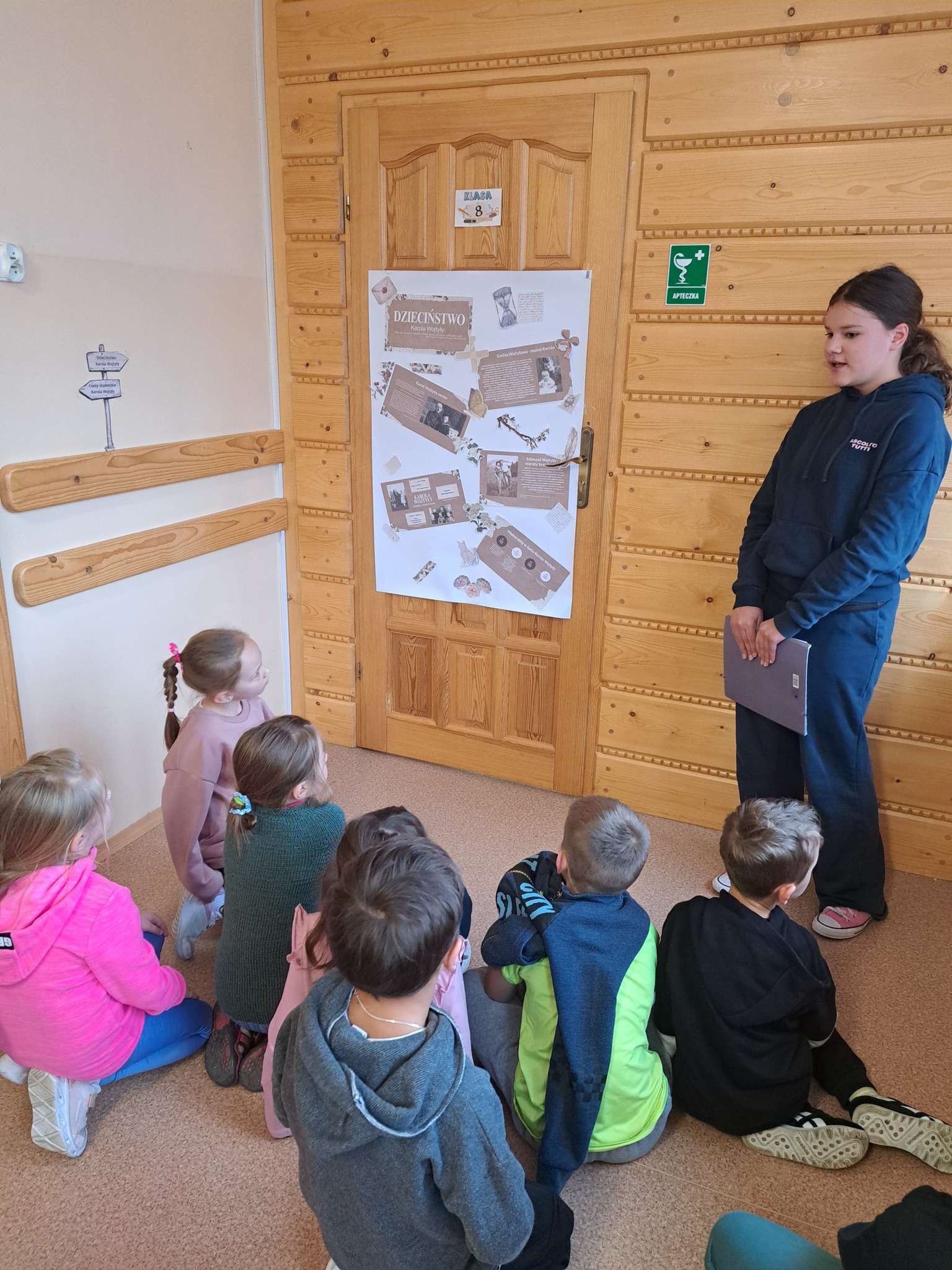 Najmłodsi uczniowie wyruszyli dziś na papieski szlak przygotowany przez starszych kolegów z Samorządu Uczniowskiego oraz Szkolne Koło Wolontariatu .