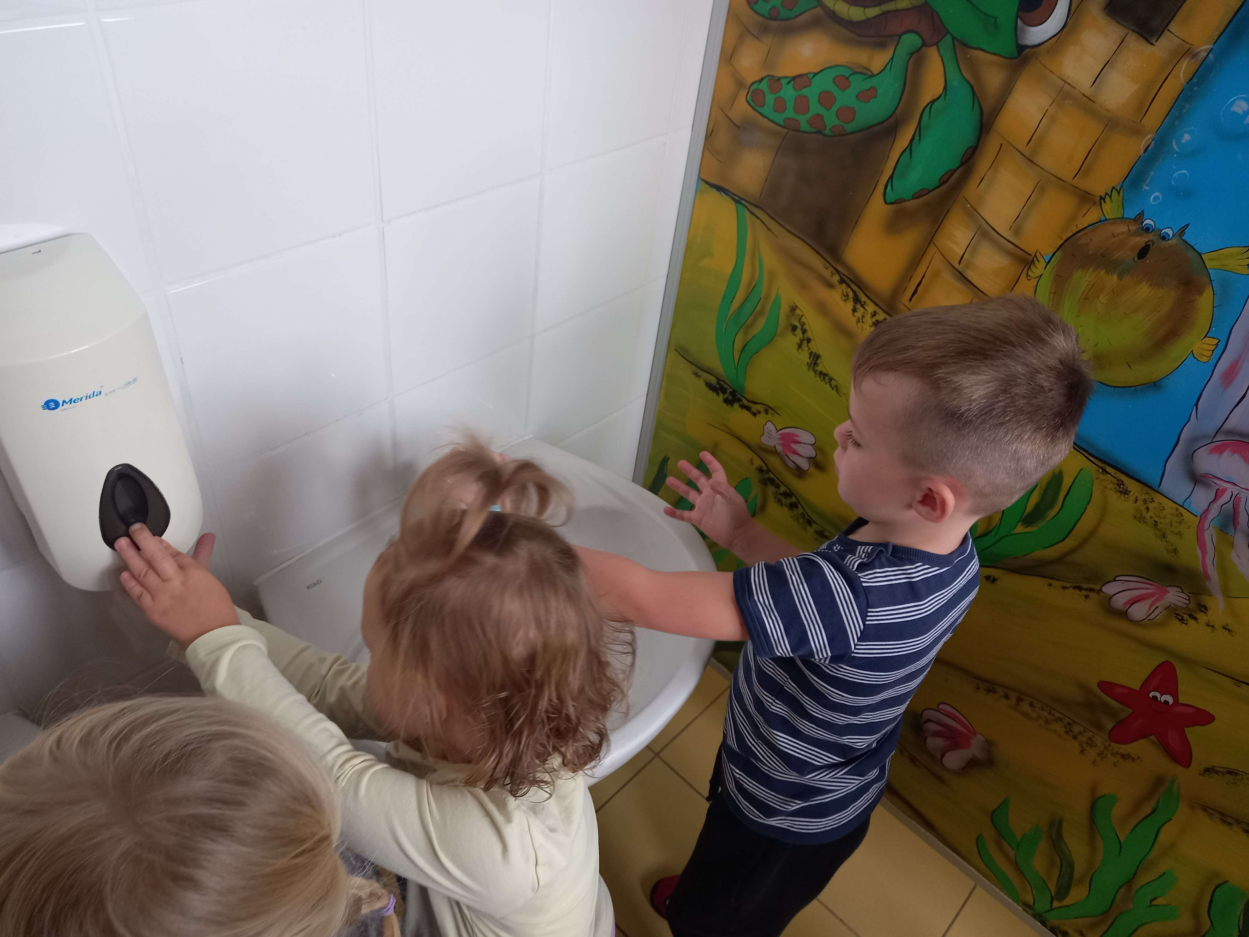 15 października przypada Światowy Dzień Mycia Rąk – święto ustanowione, by promować prawidłowe nawyki higieniczne, szczególnie wśród dzieci. W naszym przedszkolu również uczciliśmy ten dzień w wyjątkowy sposób, łącząc naukę z zabawą, aby uświadomić najmłodszym, jak ważne jest dbanie o czystość rąk. Dzieci podczas zajęć uczyły się prawidłowej techniki mycia rąk przy użyciu mydła i wody. Dowiedziały się również kiedy należy myć ręce. Poznały różne rodzaje produktów przeznaczonych do mycia rąk oraz choroby wywołane nie myciem rąk. Dzieci nie tylko świetnie się bawiły, ale przede wszystkim wyniosły z tego dnia ważną lekcję – że mycie rąk to nie obowiązek, lecz codzienny nawyk, który może ochronić przed wieloma chorobami.
