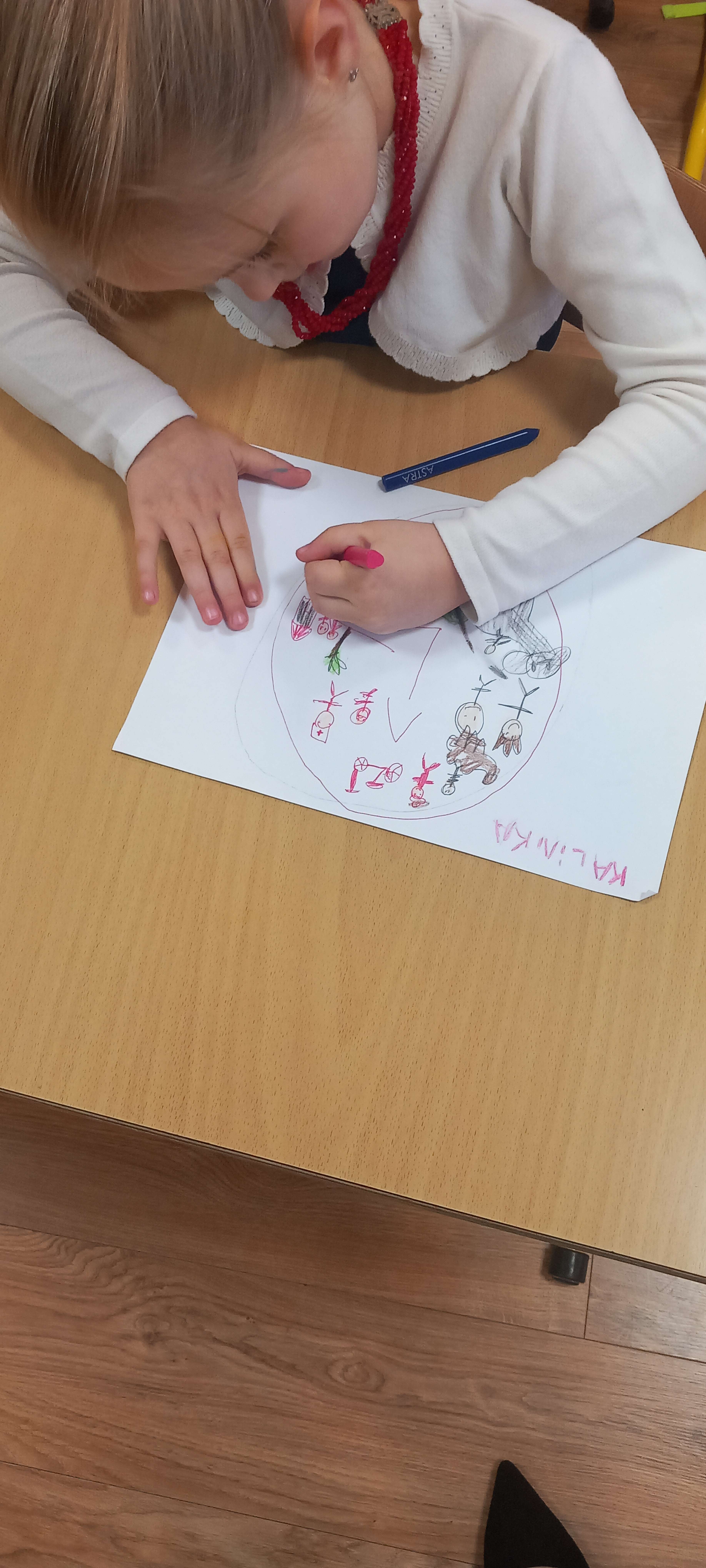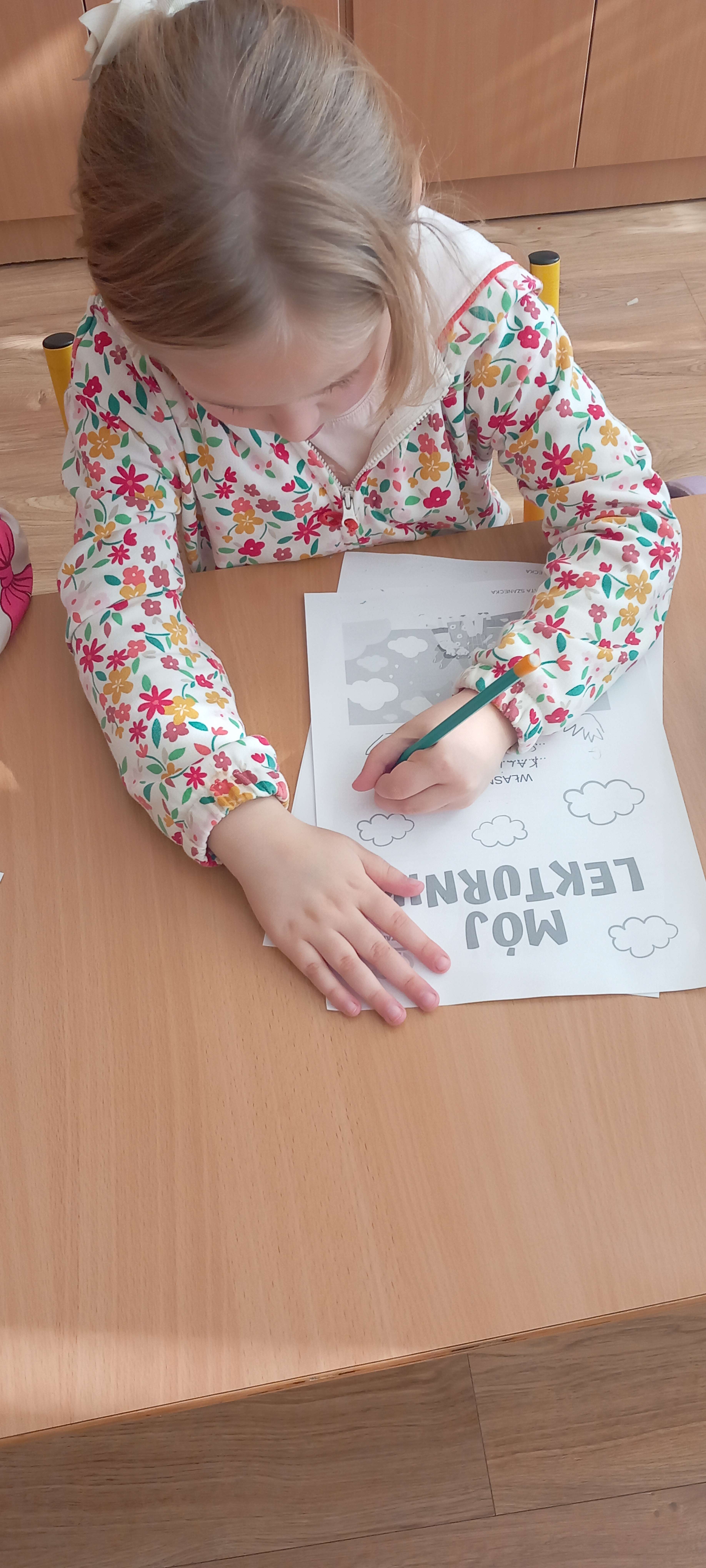 Pierwszym zadaniem było wysłuchanie fragmentów książki „Afryka Kazika”, które przeczytała wychowawczyni i rodzice uczniów. Po lekturze dzieci wypełniły swoje „Lekturniki”, w których nie tylko zapisywały refleksje dotyczące książki, ale również rysowały głównego bohatera, rozwijając swoje umiejętności plastyczne i twórcze.
