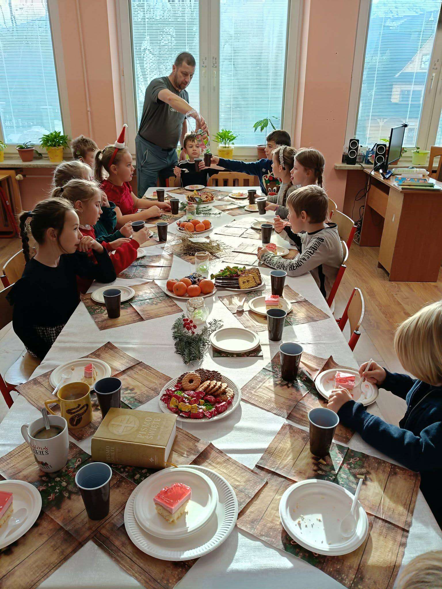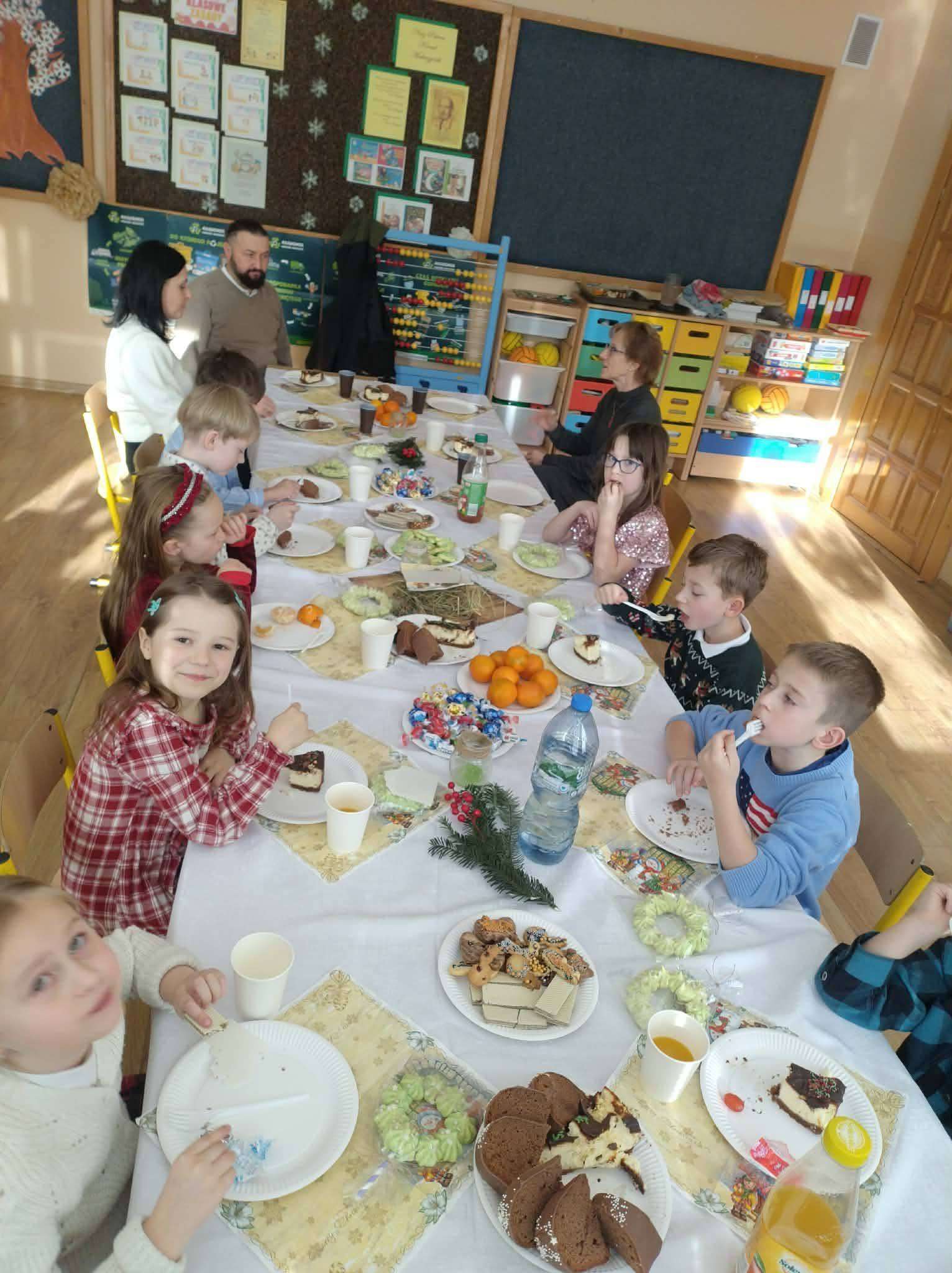 W ostatnim tygodniu przed przerwą świąteczną w naszej szkole panowała wyjątkowa, bożonarodzeniowa atmosfera. Uczniowie wraz z wychowawcami i rodzicami spotkali się na klasowych wigiliach – nie zabrakło wspólnego śpiewania kolęd, składania życzeń oraz tradycyjnego łamania się opłatkiem.