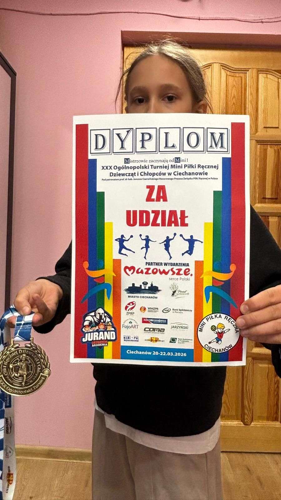 Nasza uczennica Amelka brała udział w XXX Ogólnopolskim Turnieju Mini Piłki Ręcznej Dziewcząt i Chłopców w Ciechanowie. Jesteśmy bardzo dumni z jej zaangażowania, sportowej postawy oraz walki na boisku