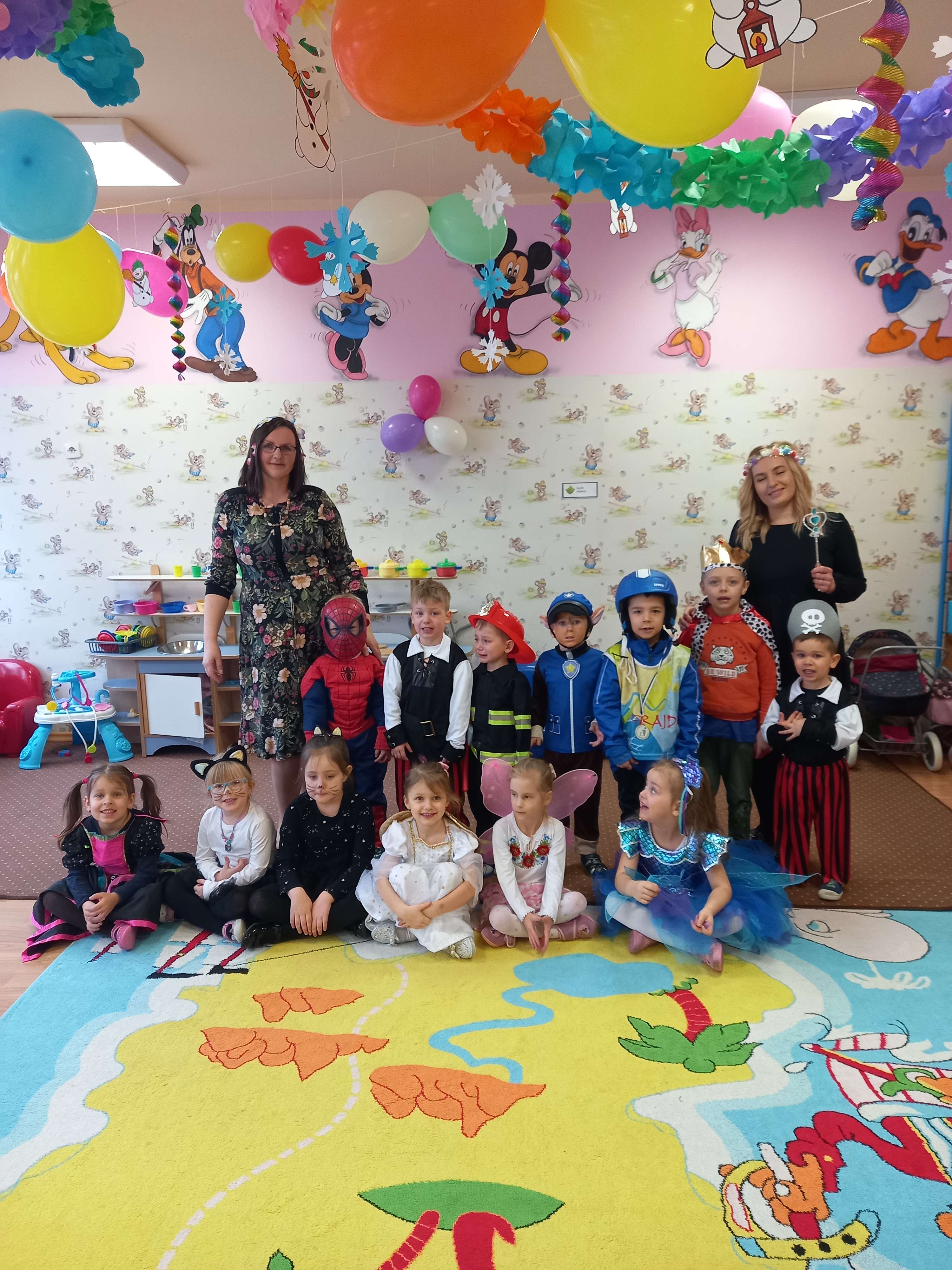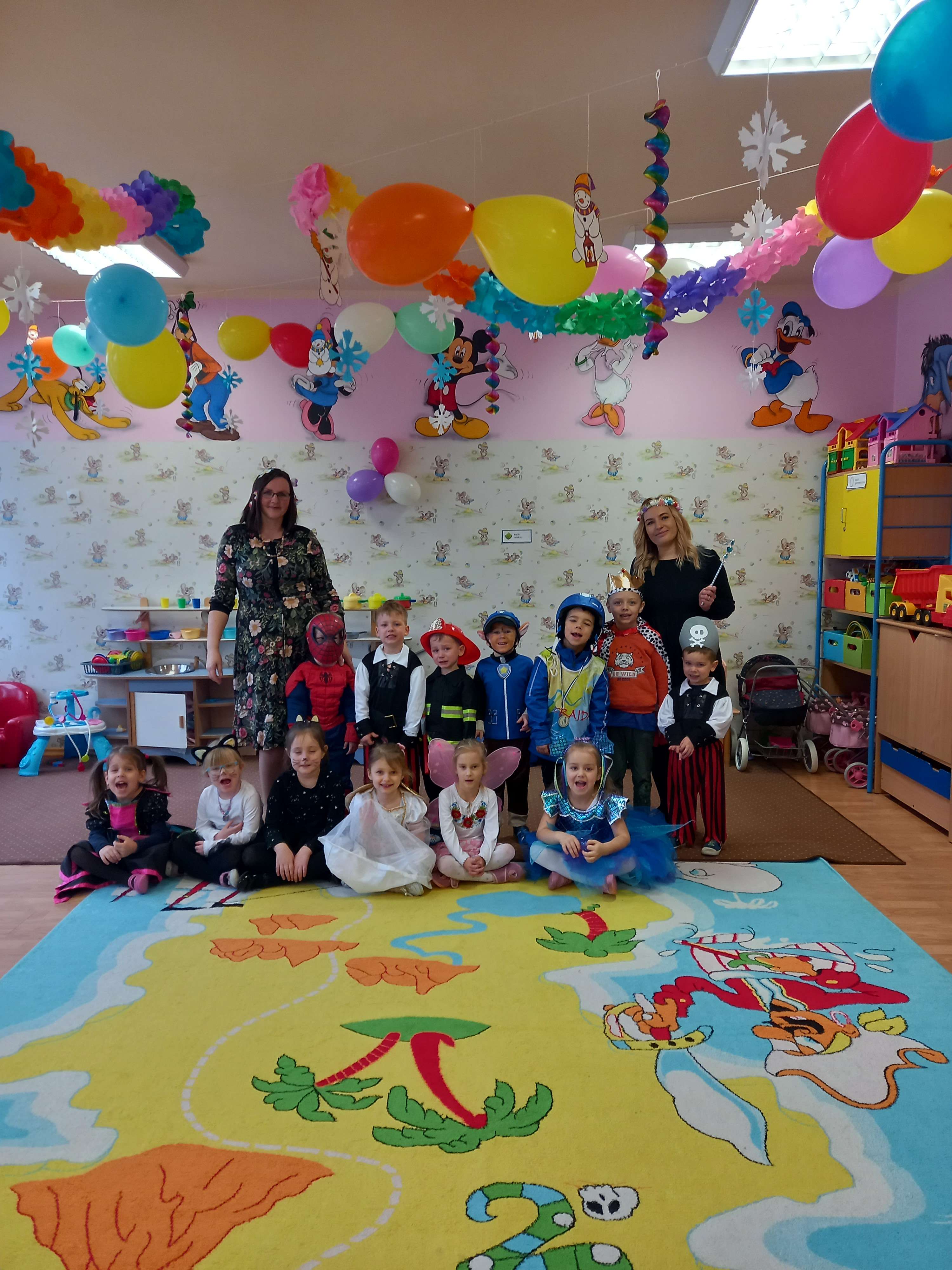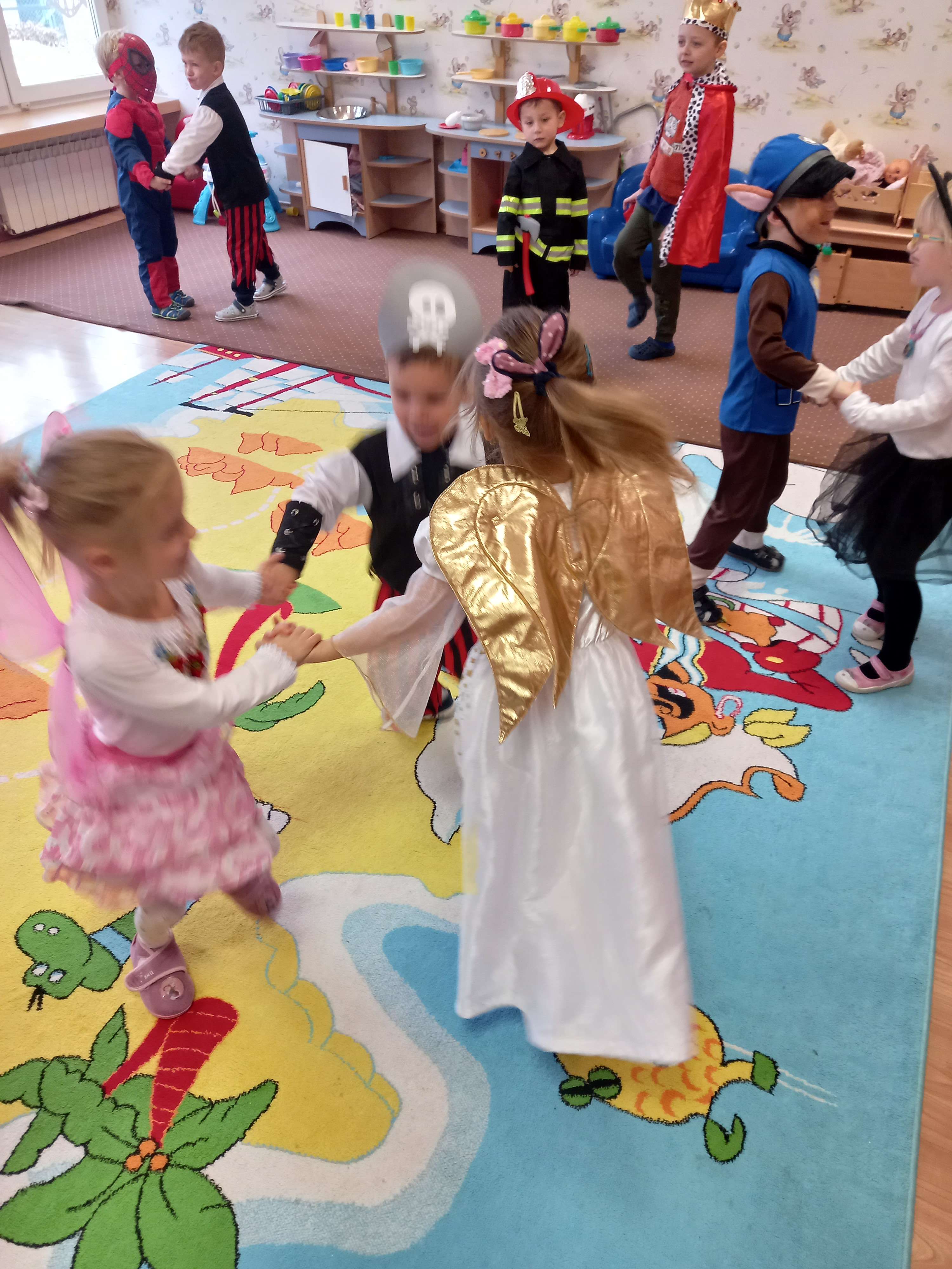 Bal karnawałowy dla przedszkolaków to dzień niezwykły, często wyczekiwany przez wiele tygodni. Jest atrakcją bardzo lubianą przez dzieci, dostarczającą im wielu przeżyć i radości. Tak też było w dniu 25.02.2022r.w naszym Przedszkolu, gdzie odbył się wielki Bal Karnawałowy.Tego dnia już od rana w przedszkolu pojawiały się kolorowe postacie. Dzieci przebrane były za bohaterów znanych bajek, w sali przedszkolnej można było spotkać wróżki, królewny, księżniczki, motylki, rycerzy, piratów, pajacyków, policjantów, Spider-Mana, Batmana, ... nie sposób zliczyć i wymienić tych wszystkich postaci. Rozpoznać dzieci było bardzo trudno. Wystrój sali wprowadził w radosny nastrój oraz zachęcał wszystkich do wesołej zabawy.Bal umożliwił dzieciom i wychowawcom spędzenie czasu w miłej atmosferze. Dziękujemy również rodzicom za słodki poczęstunek.