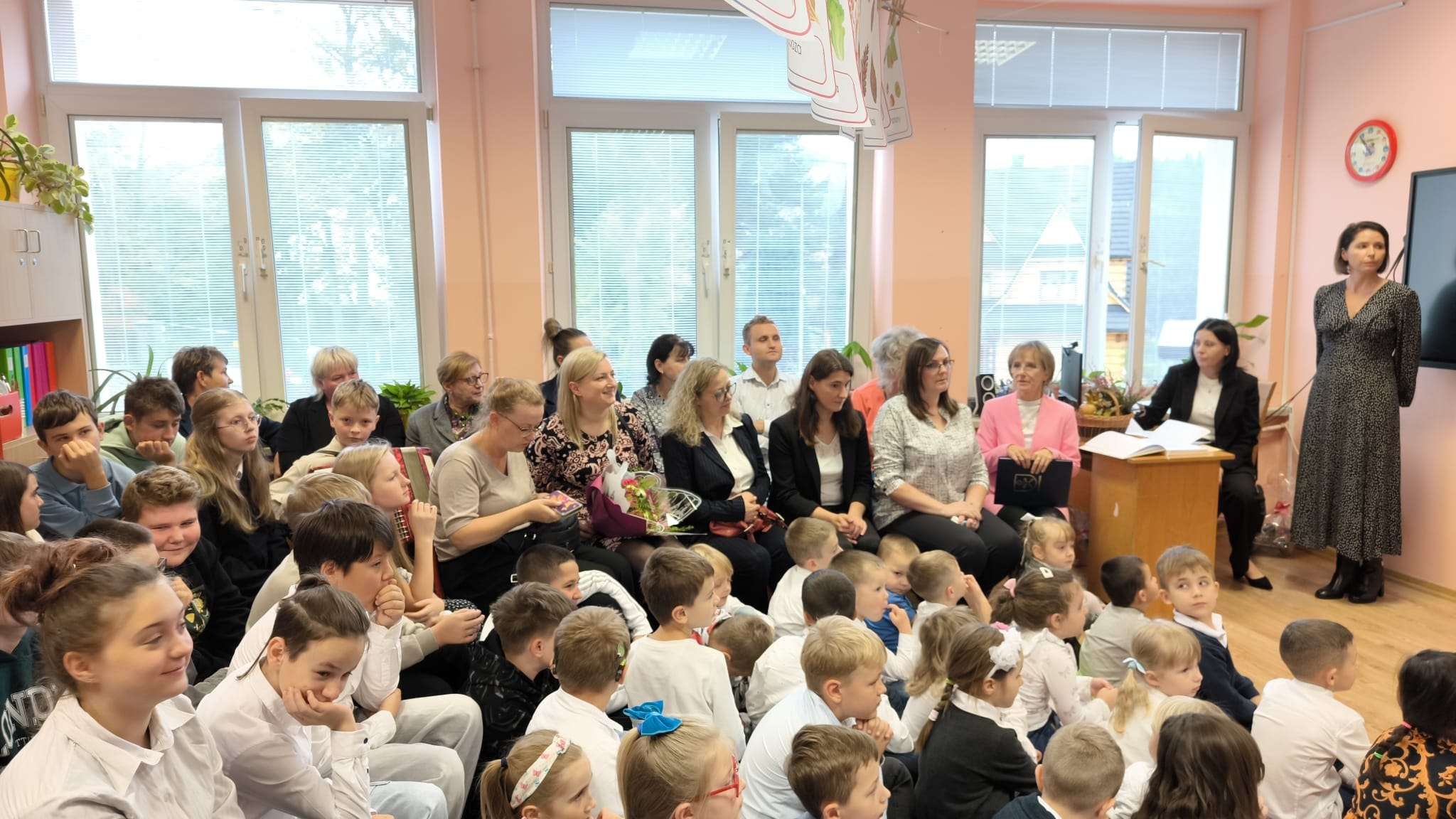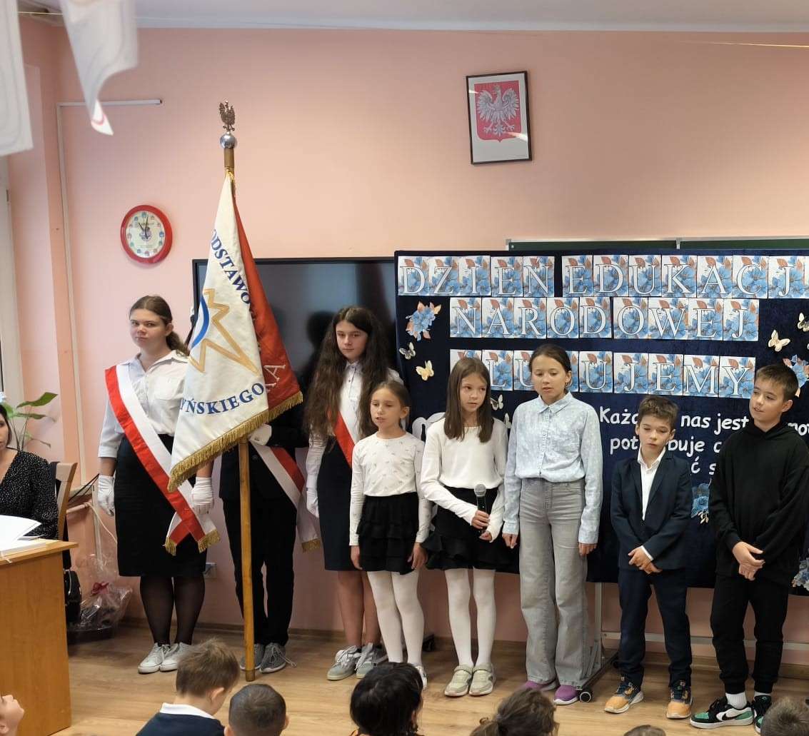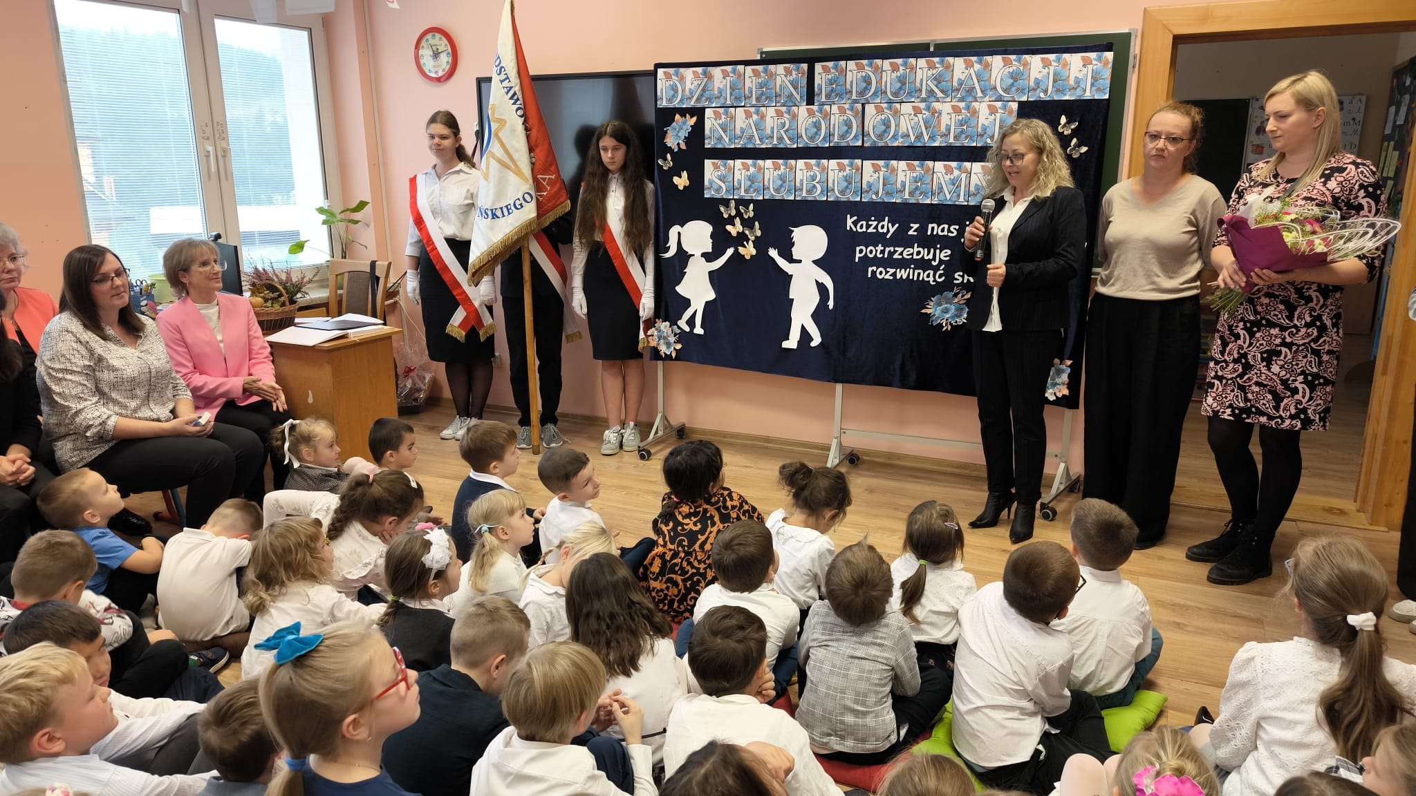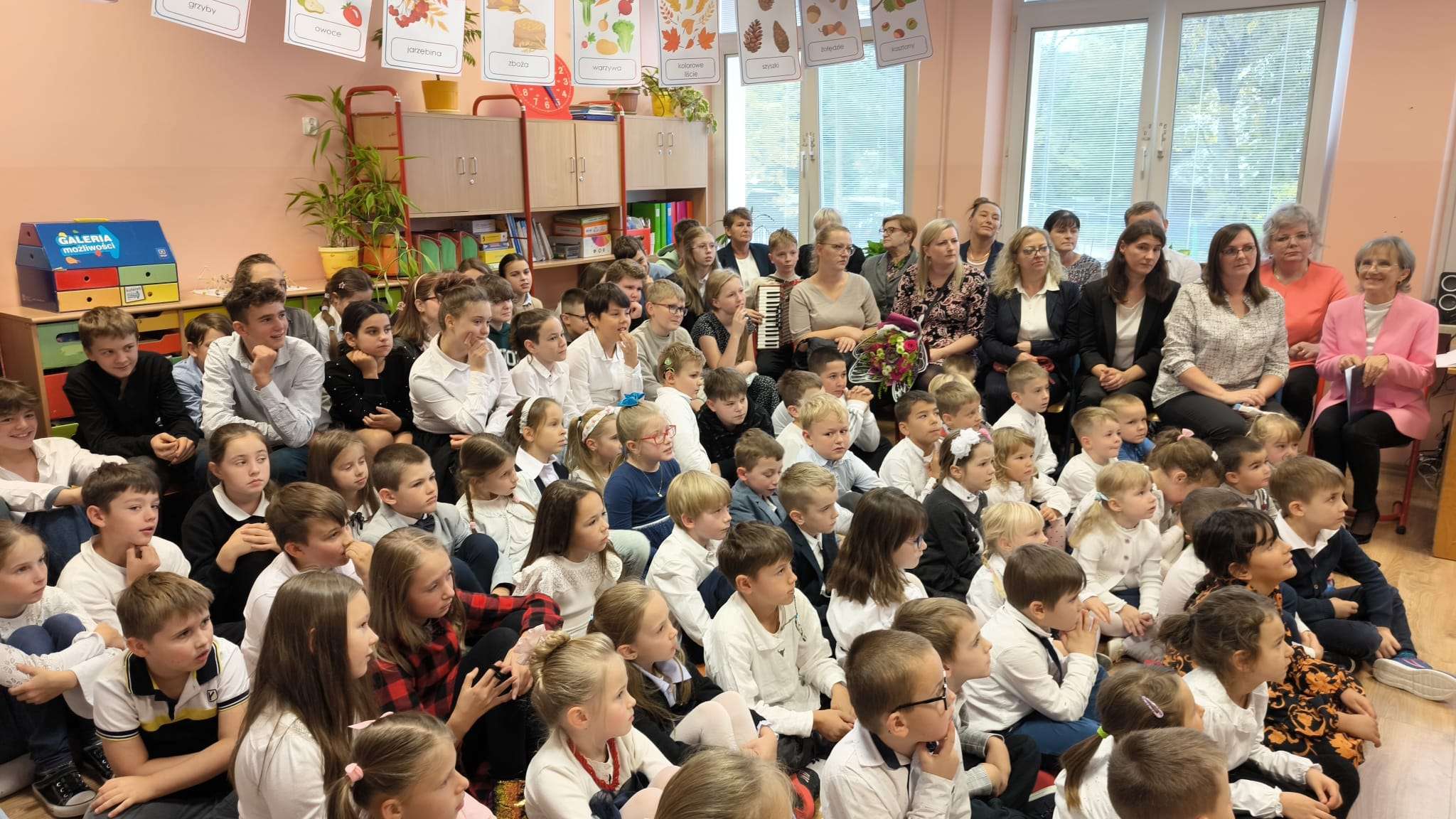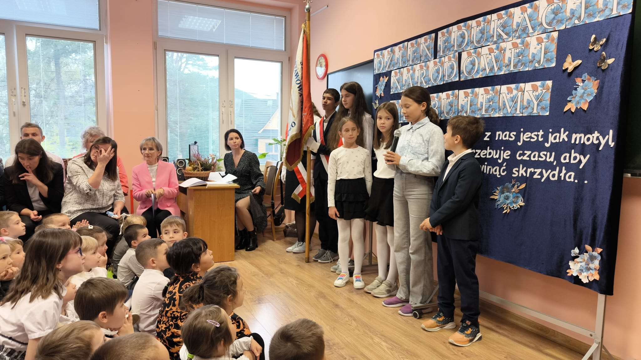Z okazji tego święta w naszej szkole odbyła się uroczysta akademia. Uczniowie klasy IV wraz z wychowawczynią przygotowali krótkie przedstawienie będące podziękowaniem dla wszystkich nauczycieli oraz pracowników szkoły. Dzieci w humorystyczny sposób złożyły życzenia oraz zaśpiewały dwie piosenki, poprzez które wyraziły wdzięczność za trud wkładany w ich edukację.