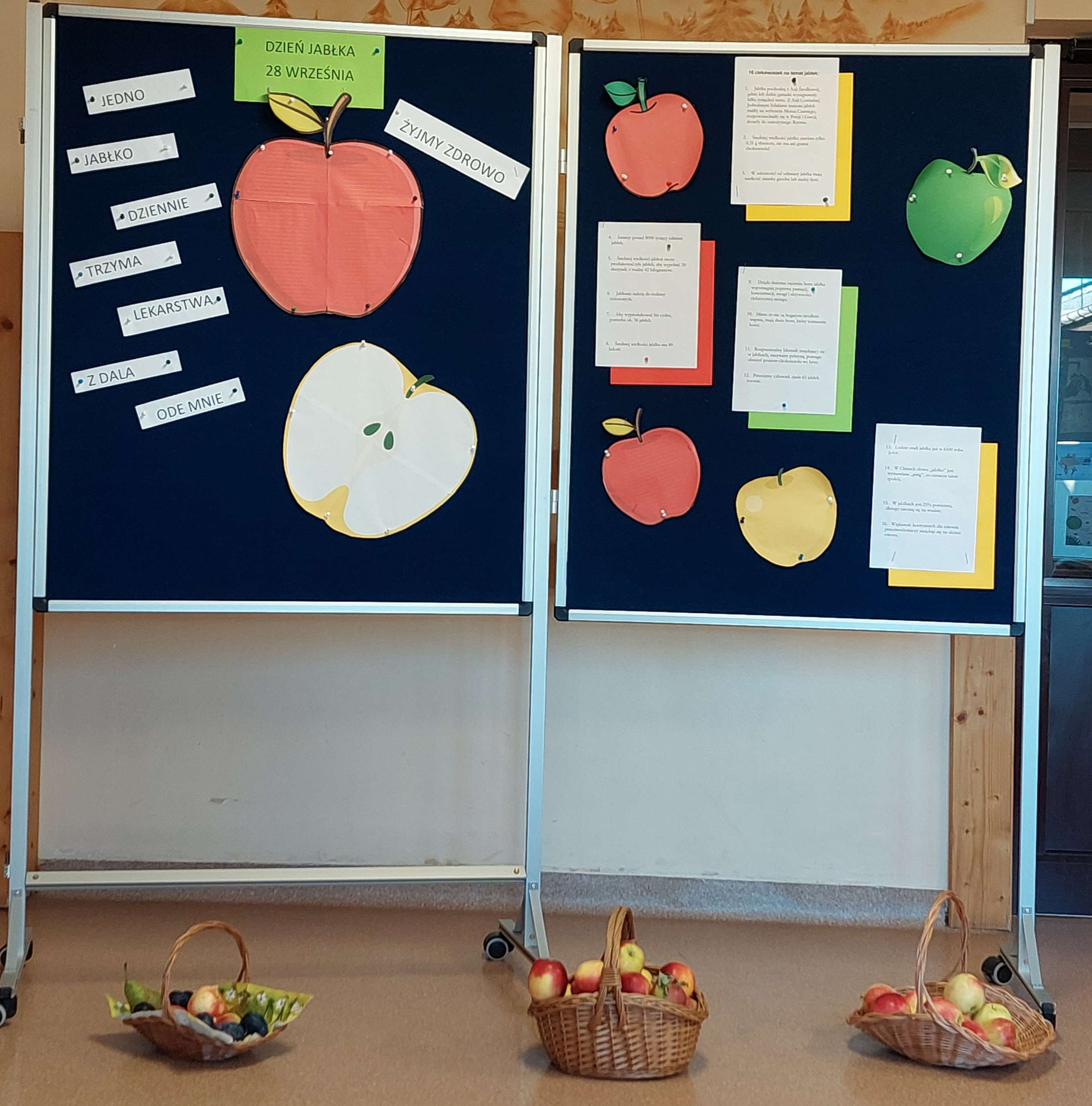28 września uczniowie klas 1-3 świętowali ŚWIATOWY DZIEŃ JABŁKA, mający na celu spopularyzowanie jedzenia tego najbardziej znanego owocu na świecie. DZIEŃ JABŁKA można wykorzystać do przybliżenia zalet jabłek oraz wzmocnienia zdrowych nawyków żywieniowych. Uczniowie wykonali też piękne prace plastyczne.