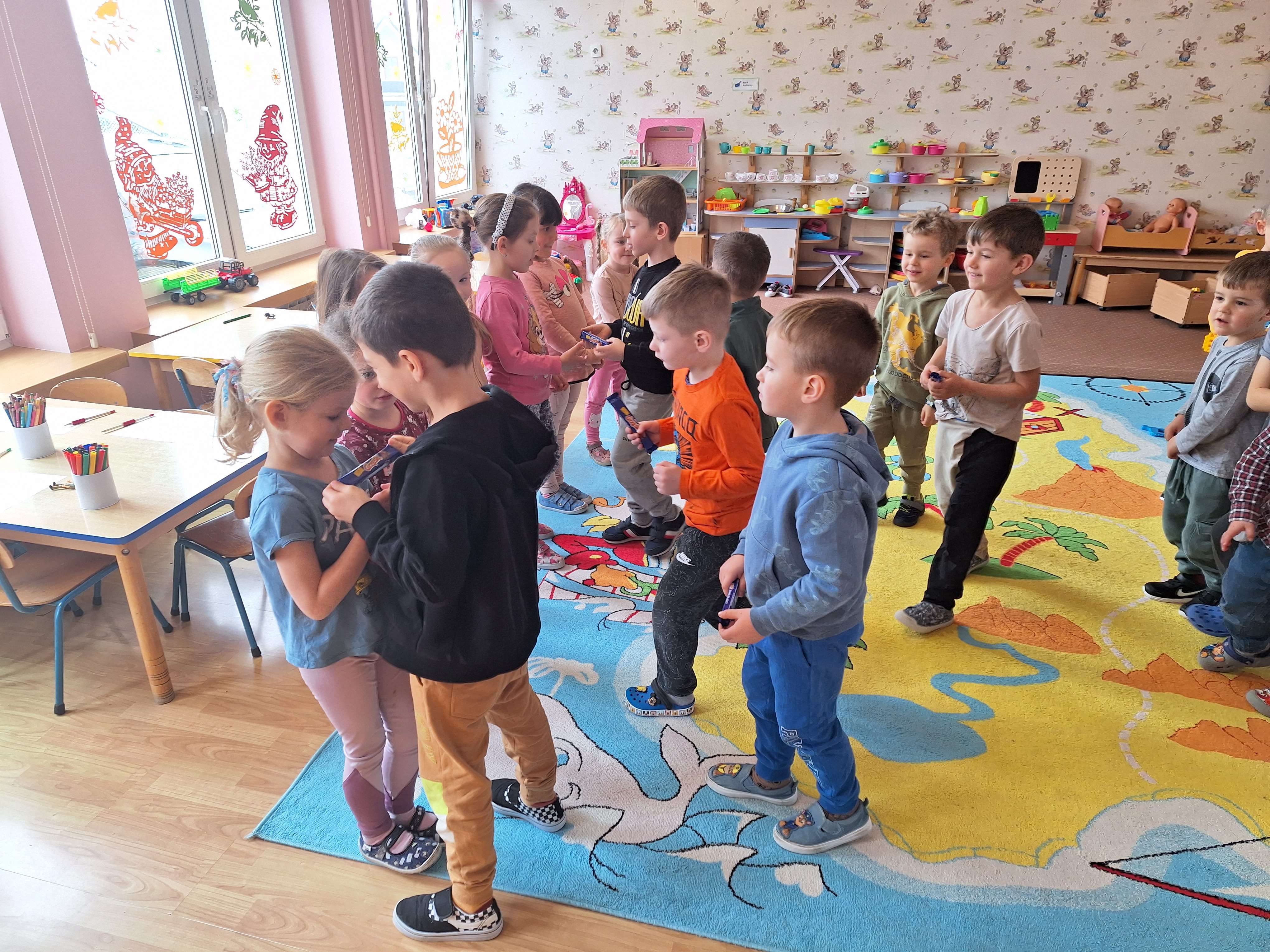 8 marca w przedszkolu świętowano Dzień Kobiet. Radosna atmosfera panowała już od samego rana. Chłopcy ze szczególnym zaangażowaniem starali się, aby ten dzień uczynić wyjątkowo miłym – jako mali dżentelmeni wyręczali dziewczynki w codziennych obowiązkach, np. w porządkowaniu sali po zabawie itp. Następnie chłopcy odśpiewali dziewczynkom „Sto lat”, złożyli życzenia oraz wręczyli słodkie upominki. Cały dzień upłynął wszystkim w atmosferze radości, wzajemnego okazywania przyjaźni i szacunku.