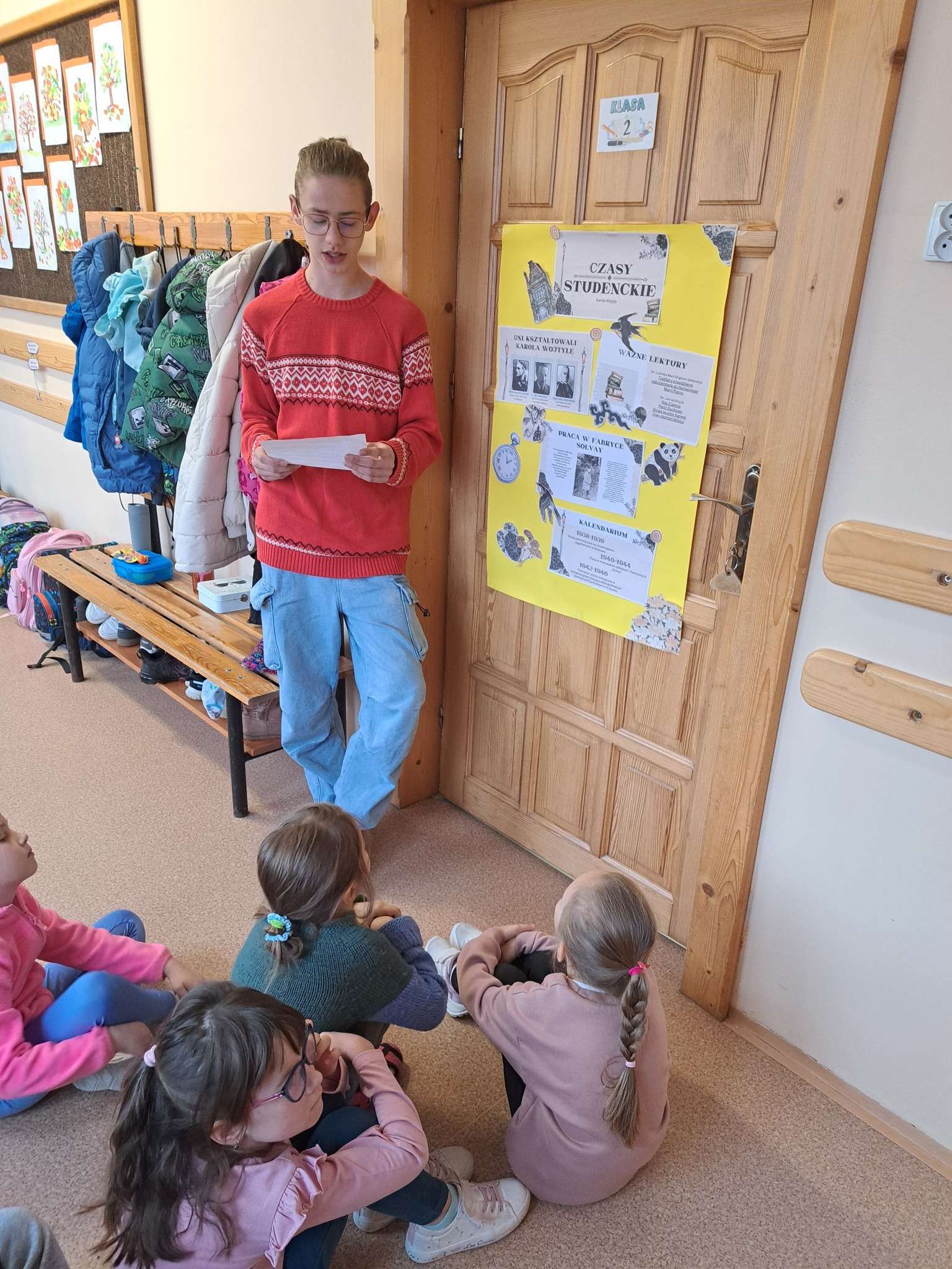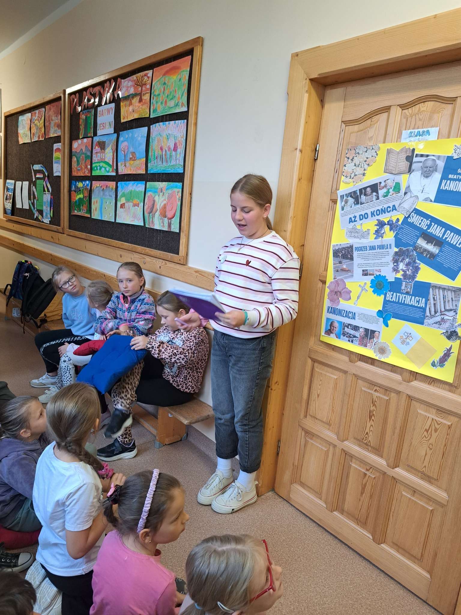 Najmłodsi uczniowie wyruszyli dziś na papieski szlak przygotowany przez starszych kolegów z Samorządu Uczniowskiego oraz Szkolne Koło Wolontariatu .