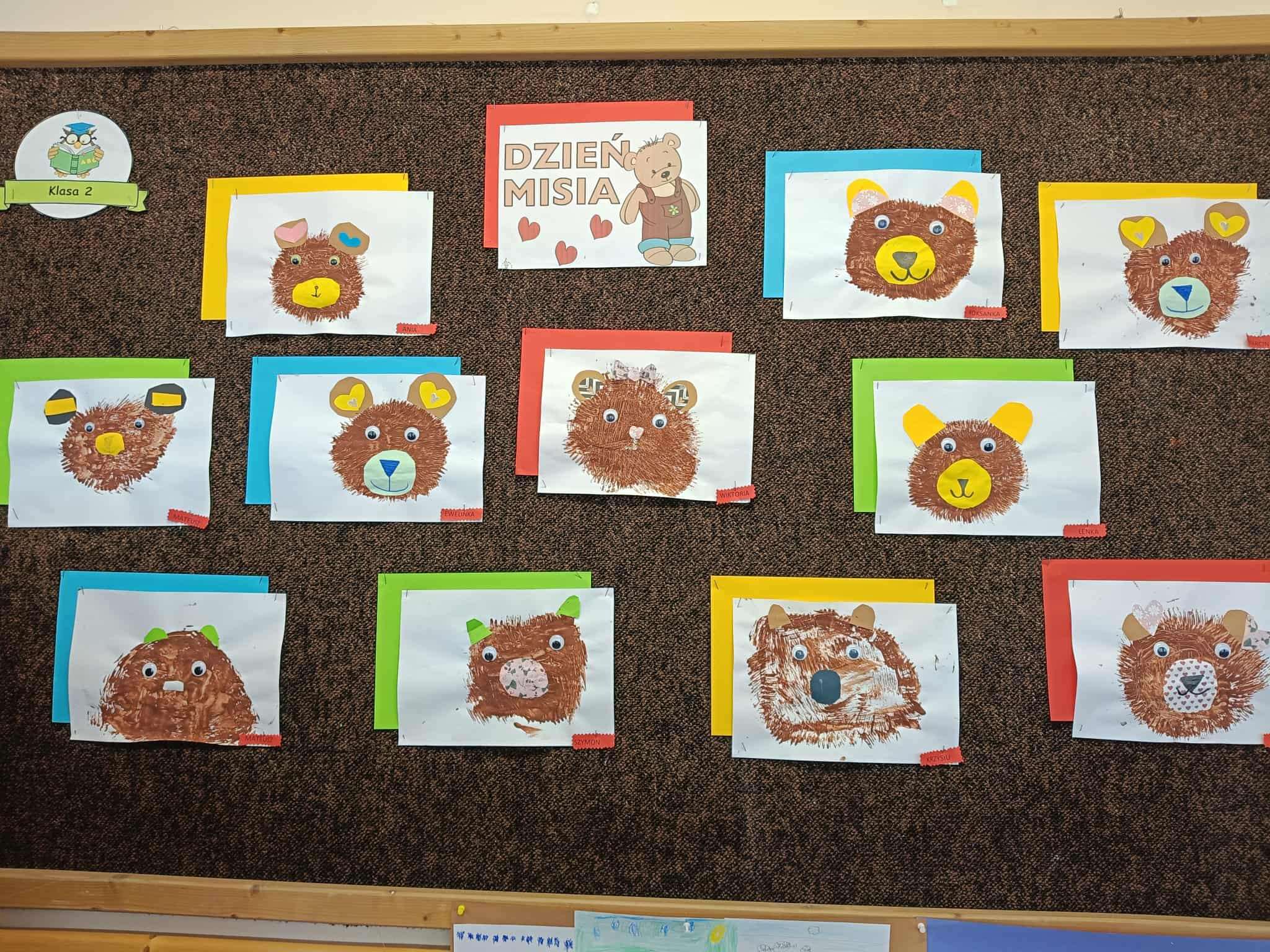 Dużym zainteresowaniem cieszyły się także zajęcia plastyczne, podczas których uczniowie wykonali piękne prace przedstawiające misie. Dzieci wykazały się ogromną kreatywnością – powstały kolorowe rysunki, wyklejanki i portrety ulubionych Pluszaków. Prace ozdobiły szkolny korytarz, tworząc radosną i przyjazną galerię.