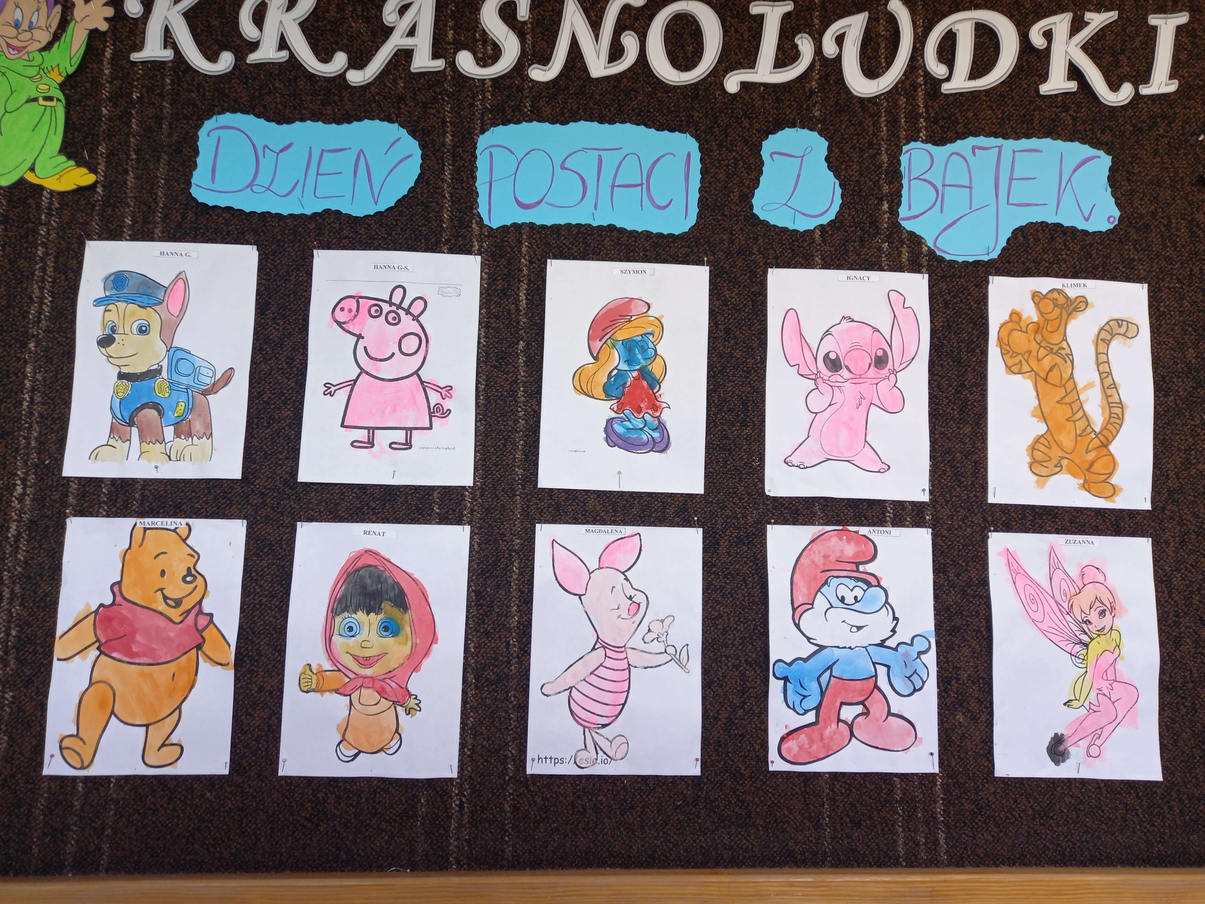 5 listopada w naszym oddziale przedszkolnym przedszkolaki obchodziły święto wszystkich bajkowych postaci. To właśnie tego dnia obchodzimy Międzynarodowy Dzień Postaci z Bajek - International Day of Fairy Tales Characters. Święto zostało ustanowione w rocznicę urodzin Walta Disney’a. Historia bajek jest bardzo długa. Już w epoce brązu, ludzie opowiadali sobie magiczne historie, przekazując je w formie ustnej kolejnym pokoleniom. Przedszkolaki malowały farbami postacie ze znanych im bajek. Zostały odznaczone medalami i w wesołych humorach ,bawiły się swoimi ulubionymi maskotkami z bajek.