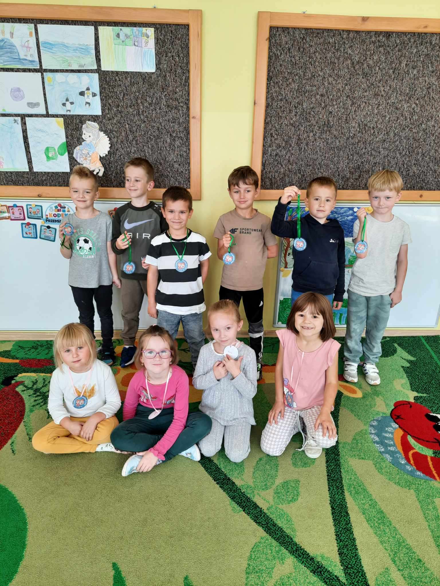 Specjalnie na tą uroczystość przygotowano wiele atrakcji i niespodzianek dostarczających okazji do świętowania i czerpania radości z bycia przedszkolakiem. Dzieci uczestniczyły we wspólnej zabawie, konkursach i grach zespołowych. Były śpiewy zabawy z chustą animacyjną, nie zabrakło także pamiątkowych zdjęć i metali. Na zakończenie Panie złożyły dzieciom życzenia i wręczyły każdemu dziecku upominki.