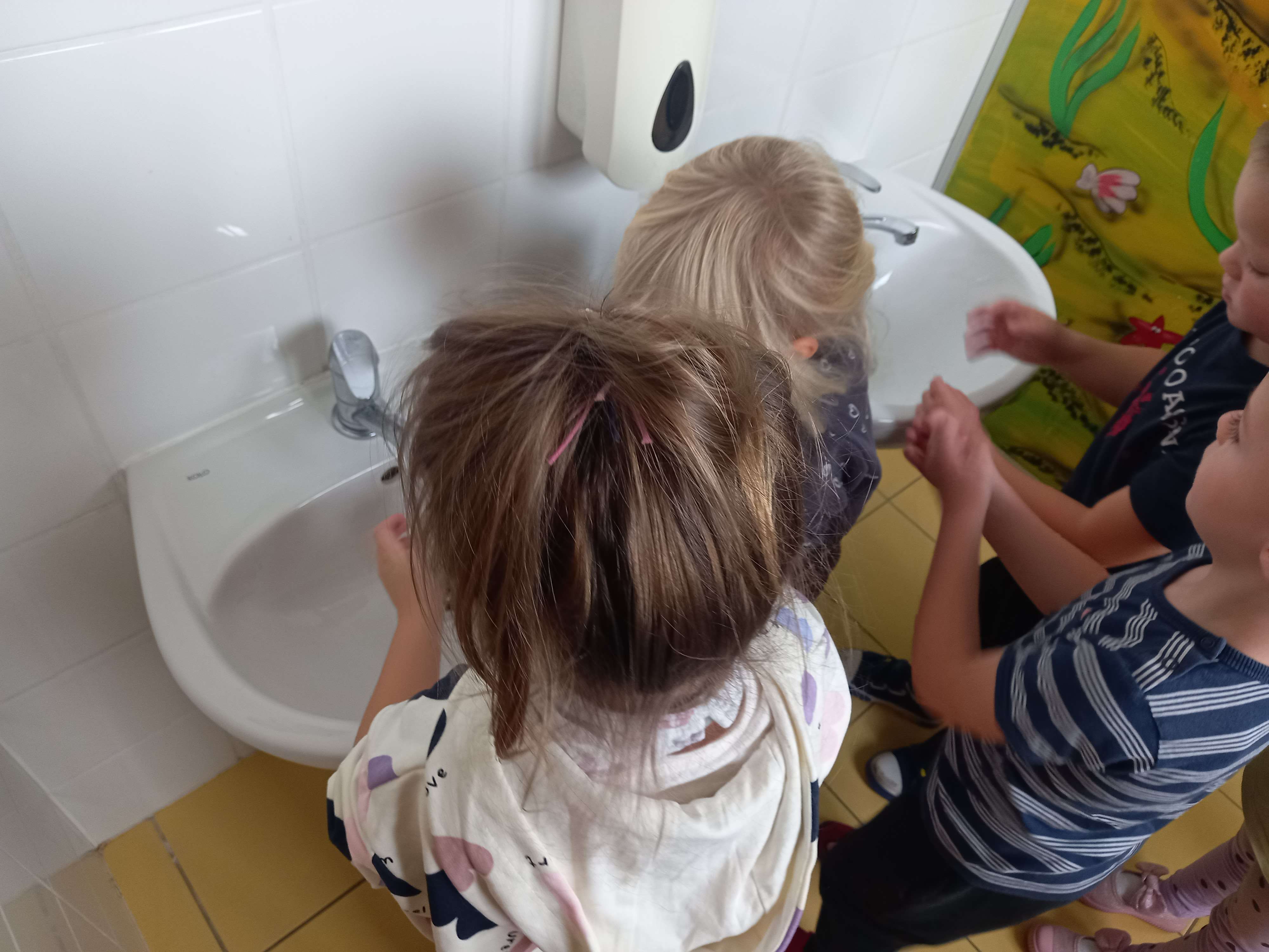 15 października przypada Światowy Dzień Mycia Rąk – święto ustanowione, by promować prawidłowe nawyki higieniczne, szczególnie wśród dzieci. W naszym przedszkolu również uczciliśmy ten dzień w wyjątkowy sposób, łącząc naukę z zabawą, aby uświadomić najmłodszym, jak ważne jest dbanie o czystość rąk. Dzieci podczas zajęć uczyły się prawidłowej techniki mycia rąk przy użyciu mydła i wody. Dowiedziały się również kiedy należy myć ręce. Poznały różne rodzaje produktów przeznaczonych do mycia rąk oraz choroby wywołane nie myciem rąk. Dzieci nie tylko świetnie się bawiły, ale przede wszystkim wyniosły z tego dnia ważną lekcję – że mycie rąk to nie obowiązek, lecz codzienny nawyk, który może ochronić przed wieloma chorobami.
