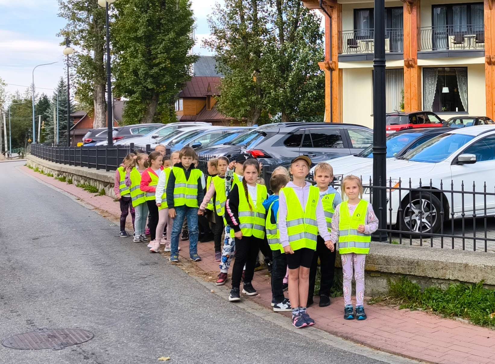 W dniu 24 września 2025r uczniowie klas 1-2 wraz z wychowawczyniami: panią Marią Łukaszczyk i Beatą Sikorą udali się na spacer na najbliższą ulicę i skrzyżowanie celem przypomnienia zasad poruszania się na jezdni. Uczniowie obserwowali ruch na ulicy, przechodzili przez ulicę w miejscu do tego przeznaczonym- na pasach, jak również uczyliśmy się przechodzić w miejscu, gdzie nie ma pasów. Omówiliśmy znaczenie znaków drogowych oraz jak ważne jest noszenie odblasków o zmroku.
