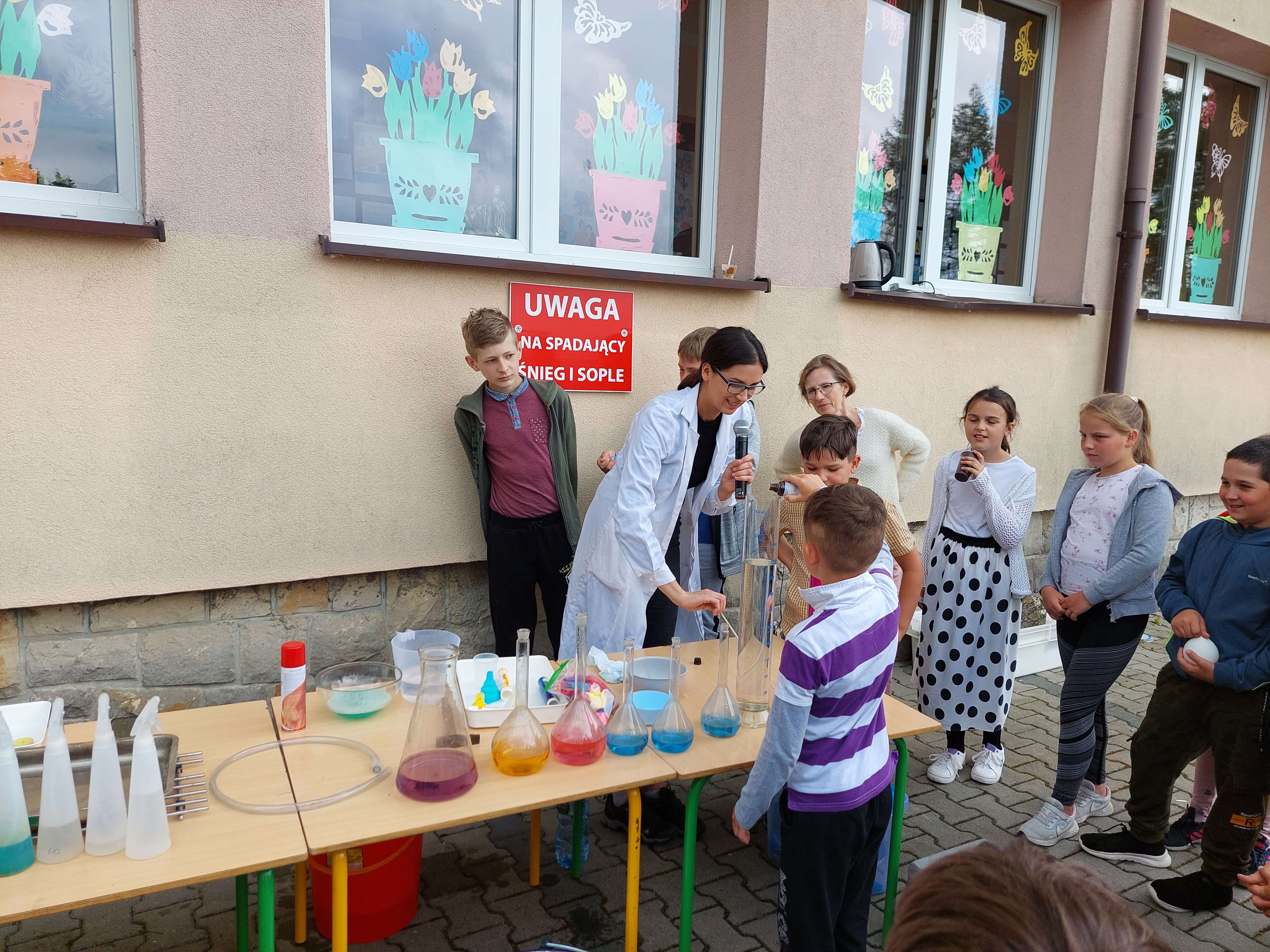Oprócz występów w programie całej imprezy plenerowej były gry i zabawy sportowe na boisku szkolnym, tor przeszkód, unihokej, badminton. Na podwórku szkolnym odbyły się pokazy chemiczne przygotowane przez Panią Proton. Cieszyły się bardzo dużym zainteresowaniem. Szczególnie atrakcyjne były doświadczenia z „suchym lodem”. Wszyscy również z przyjemnością obejrzeli występ ukraińskiego zespołu „Zbrucz” spod Tarnopola. Zaprezentowane zostały tańce, śpiew i gra na instrumentach, między innymi takich jak „duduk”. Ten wyjątkowo brzmiący instrument pochodzi z Armenii.