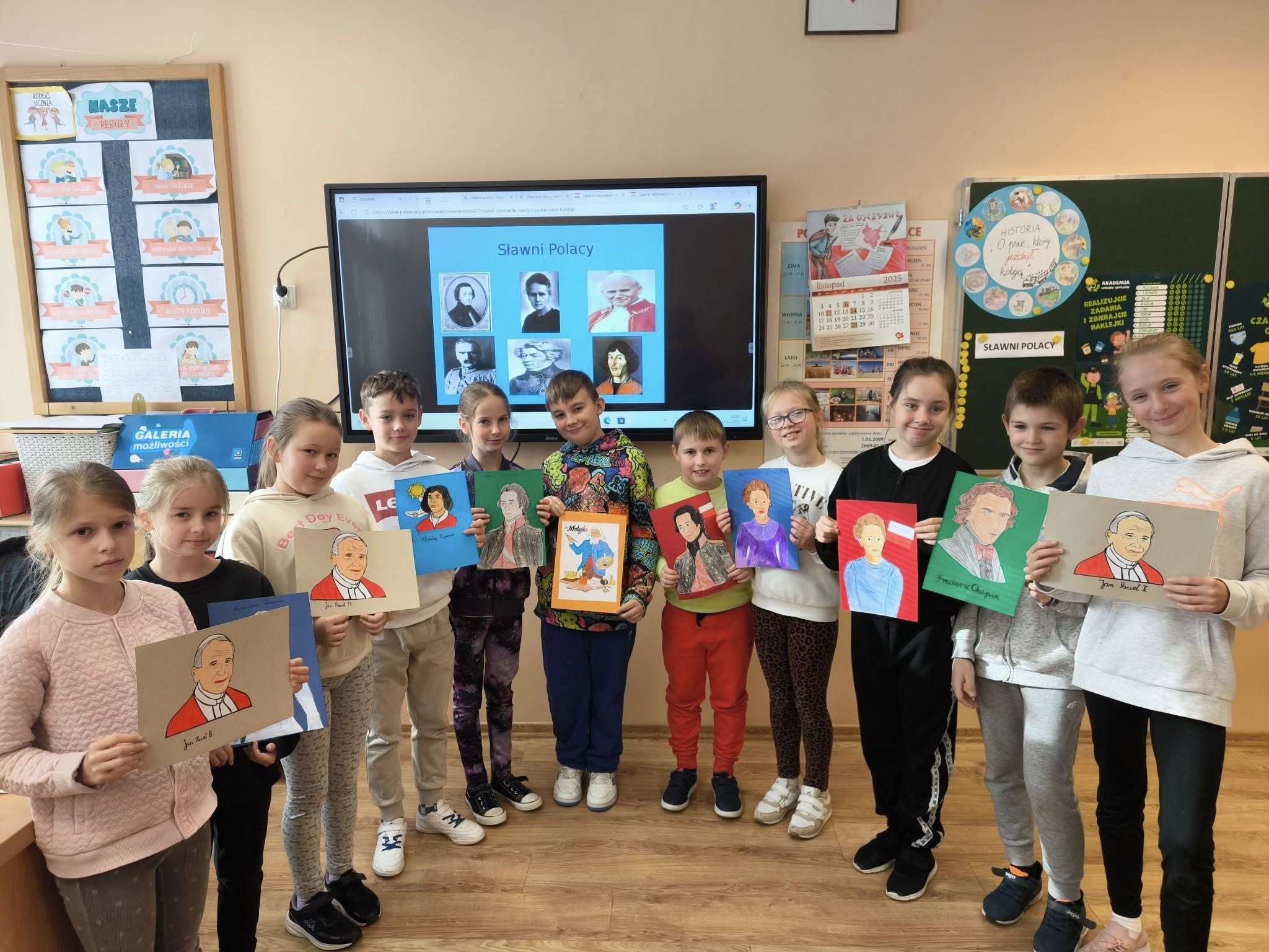 Uczniowie klas 2 i 3 Szkoły Podstawowej im. Kornela Makuszyńskiego nr 7 w Zakopanem zrealizowali listopadowe zadanie pt. „Polska – kraj moich bohaterów”. Z ogromnym zaangażowaniem tworzyli prace plastyczne oraz oglądali filmy edukacyjne , pogłębiając swoją wiedzę o wybitnych Polakach.