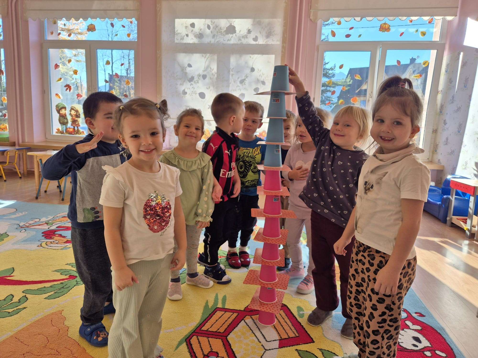 Dziś w naszej grupie Krasnoludków działy się prawdziwe cuda! Podczas zabawy językowej dzieci nie tylko ćwiczyły słownictwo i współpracę, ale też... ustanowiły rekord! Z ogromnym zaangażowaniem, precyzją i uśmiechem na twarzach ułożyły najwyższą wieżę, jaka kiedykolwiek powstała w naszej sali. Brawo dla wszystkich Krasnoludków za wspaniałą współpracę, kreatywność i wytrwałość!