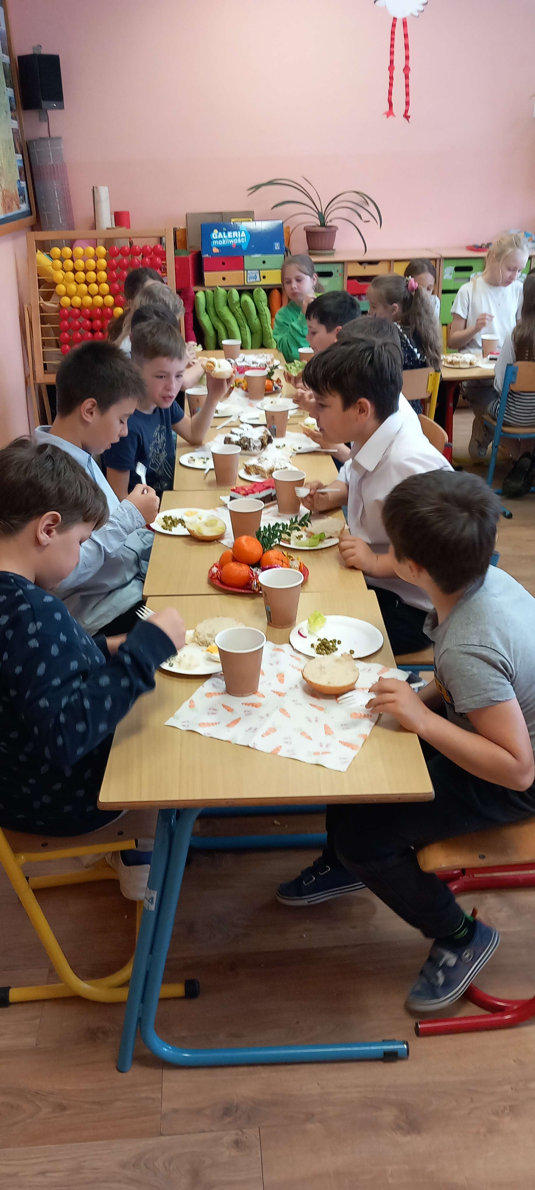 Uczniowie klas I – III oraz IV w naszej szkole również zasiedli do śniadania wielkanocnego. Podczas śniadania spożywali tradycyjne potrawy oraz słodkości przygotowane przez rodziców.