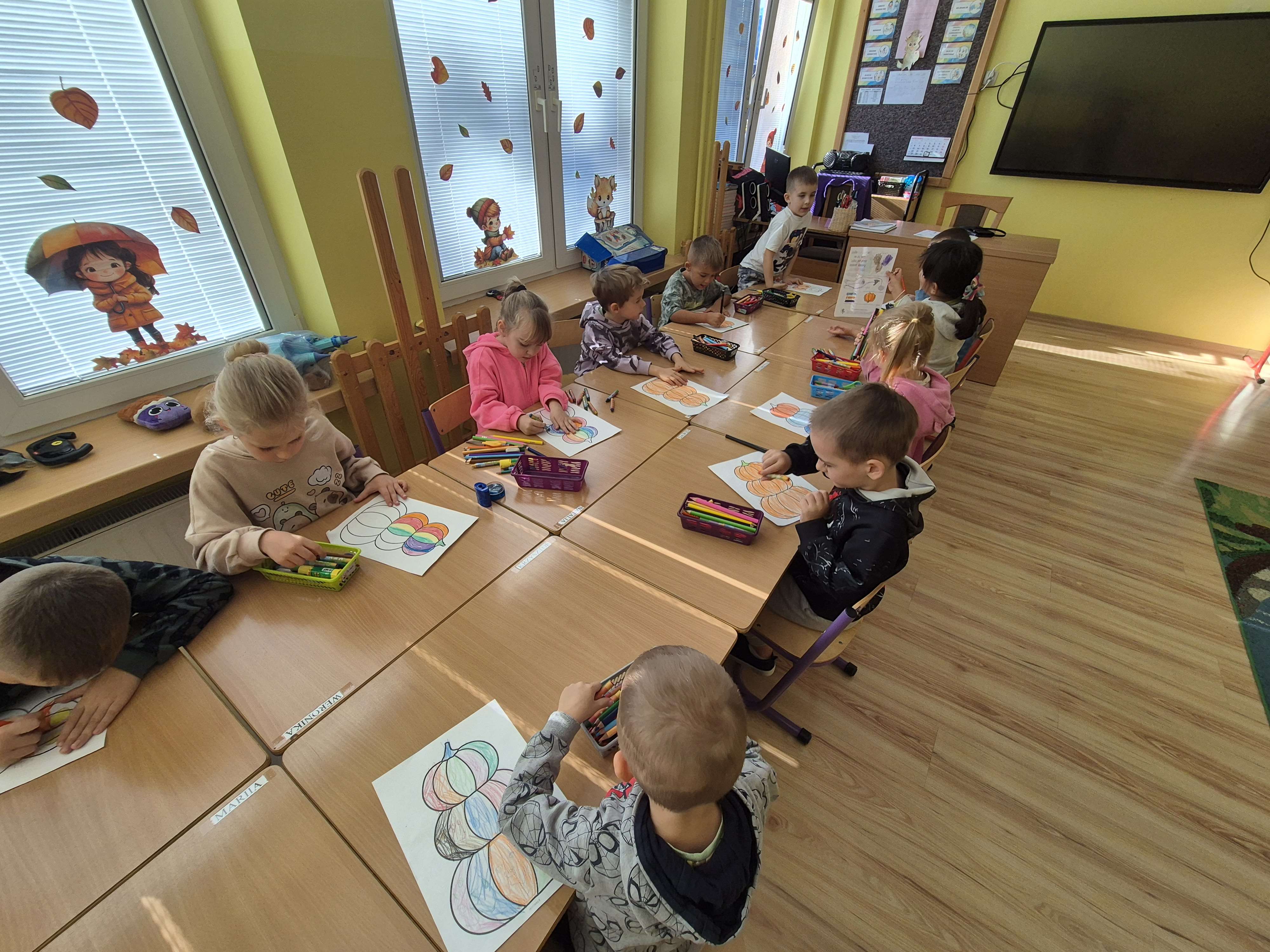🧡 Uczniowie oddziałów przedszkolnych oraz klasy I poznawali wesołą rymowankę o dyni, a następnie tworzyli własne, kolorowe prace plastyczne. W przedszkolnych salach pojawiły się piękne, pomarańczowe dynie – każda inna, każda wyjątkowa!