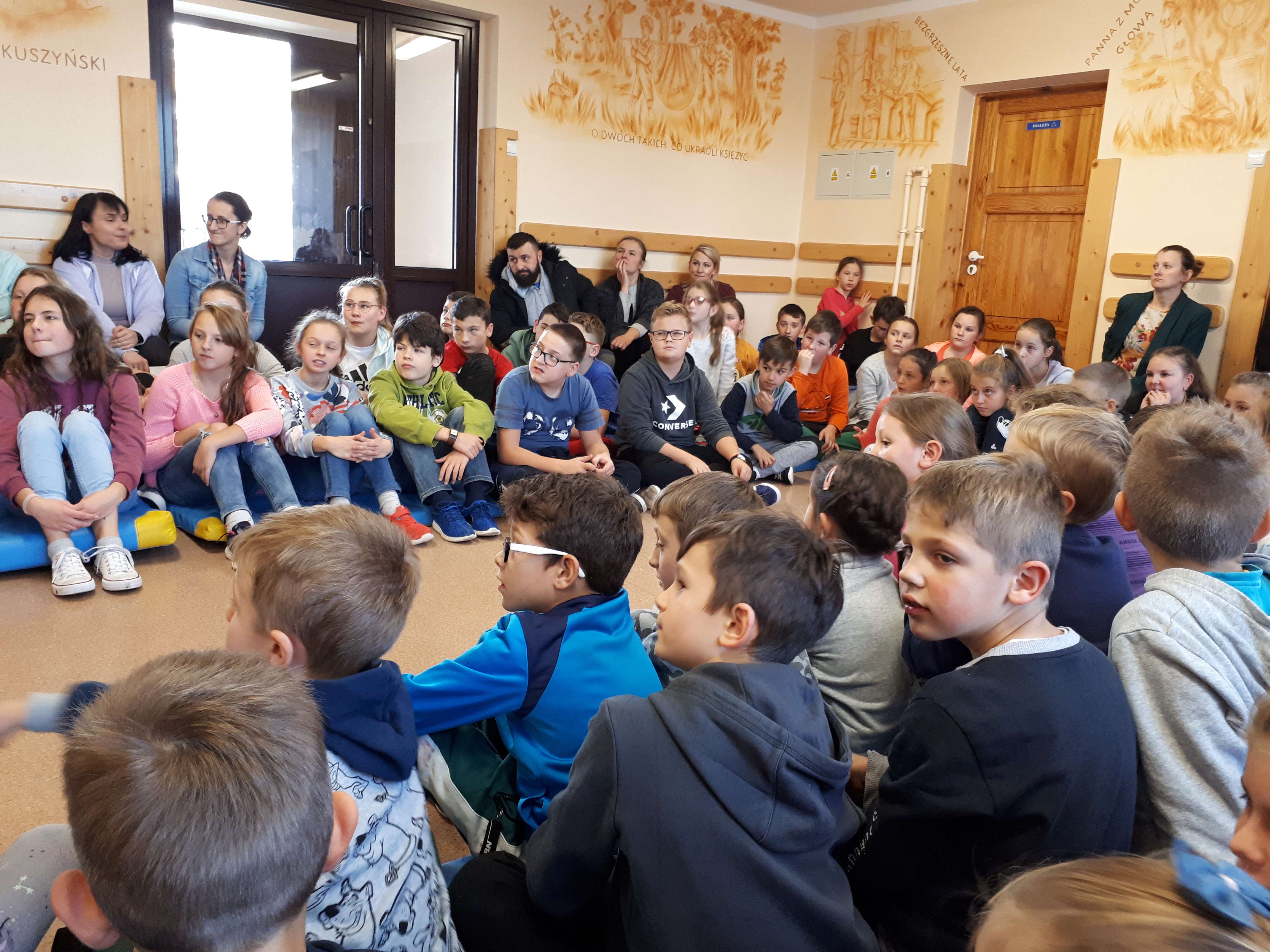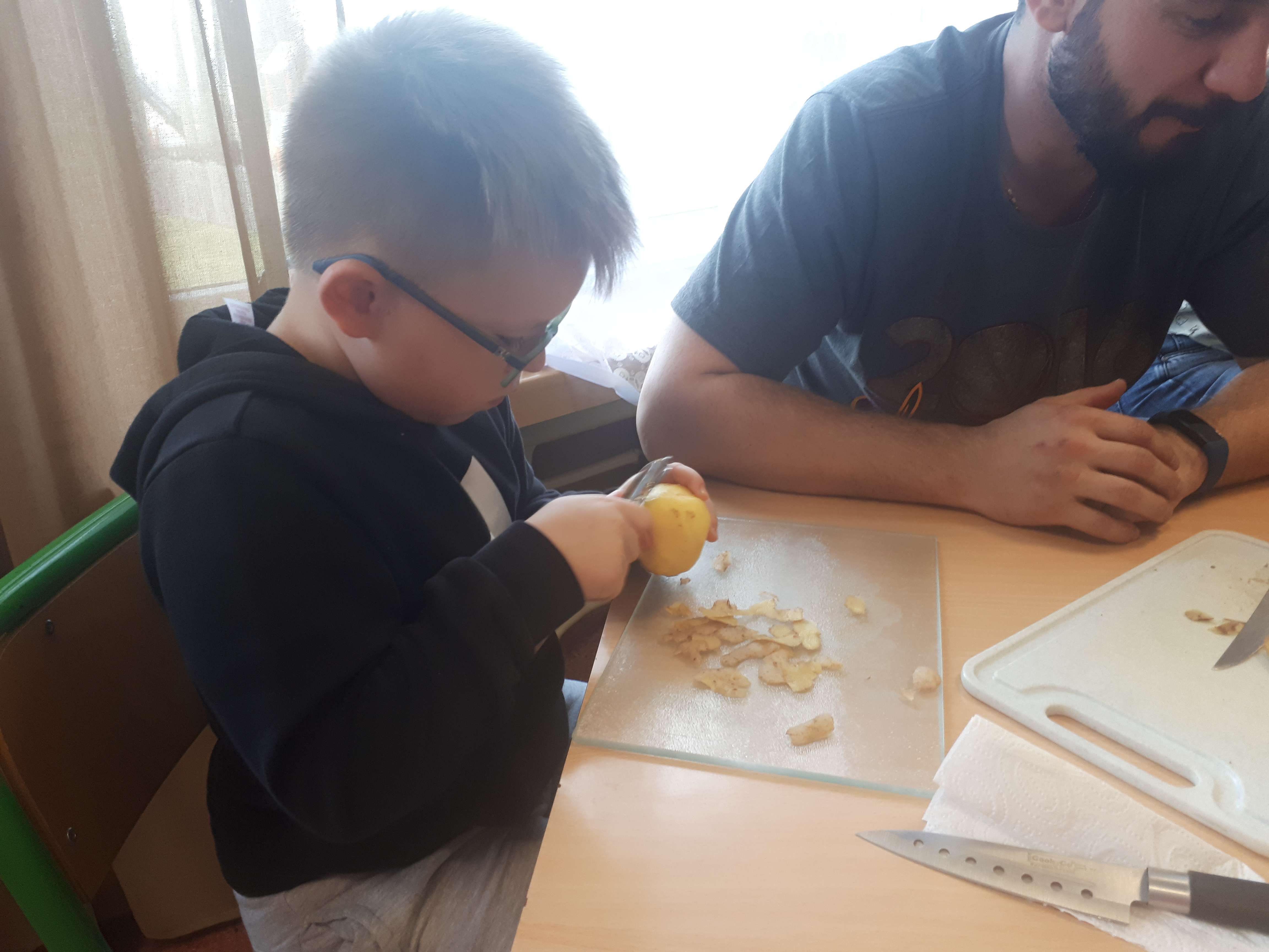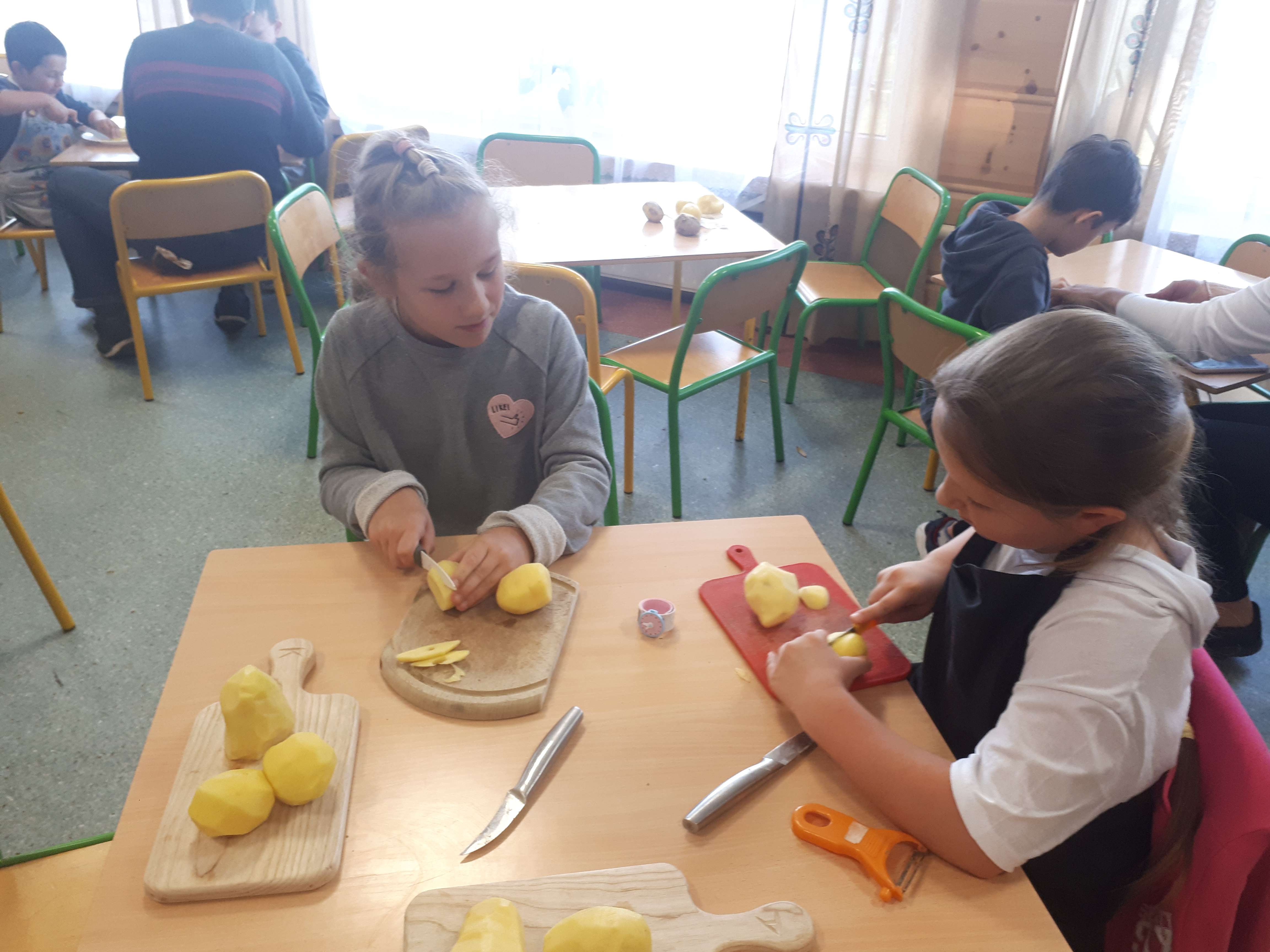Dnia 15 listopada od godziny 13:30 do 16:30 po raz pierwszy w naszej szkole obchodziliśmy ŚWIĘTO ZIEMNIAKA, w którym brali udział uczniowie klas 1-8, ich rodzice i wychowawcy klas. Najpierw pani dyrektor zapoznała uczniów z „historią ziemniaka”. Wszyscy dowiedzieli się skąd pochodzi, jak nazywa się w różnych regionach Polski, z jakich części się składa, oraz jakie potrawy można z niego przygotować. Uczniowie obierali ziemniaki i odbył się konkurs na najdłuższe obierki. Potem każda klasa miała wykonać potrawę z ziemniaków. Uczniowie klasy 1 i 2 kroili obrane ziemniaki na frytki, które smażyli rodzice. Uczniowie klasy 3 zrobili pyszną sałatkę ziemniaczaną. Klasa 4 usmażyła chipsy. Klasa 5 miała za zadanie zrobienie moskoli. Uczniowie klasy 6 ucierali ziemniaki na placki ziemniaczane, które smażyli dorośli. Klasa 7 i 8 były odpowiedzialne za pieczenie ziemniaków w ognisku. Na koniec wszyscy chętnie częstowali się zrobionymi daniami z ziemniaków: frytkami, chipsami, plackami ziemniaczanymi, moskolami, sałatką ziemniaczaną i ziemniakami prosto z ogniska. Potrawy smakowały wybornie. Nikt, by się nie spodziewał, że tyle radości sprawi dzieciom tradycyjny ziemniak.