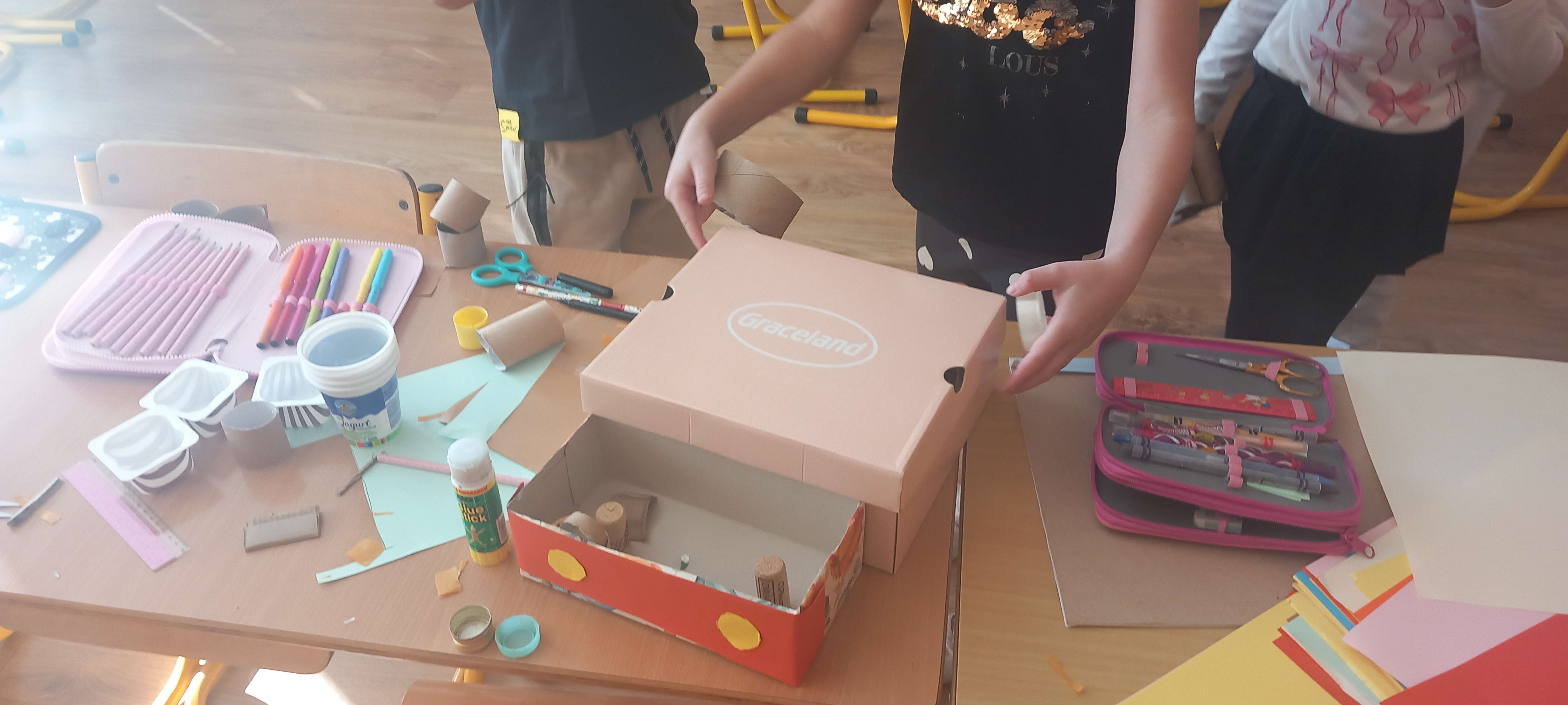 Nie zabrakło również działań konstrukcyjnych i inżynierskich – uczniowie wymyślili, zaprojektowali i wykonali z dowolnych materiałów maszynę, która mogłaby pomóc bohaterowi książki rozwiązać jego największy problem. Każda maszyna otrzymała nazwę, a dzieci zaprezentowały jej działanie i funkcje w formie ustnej, co dodatkowo rozwijało ich kompetencje komunikacyjne i umiejętność prezentacji.