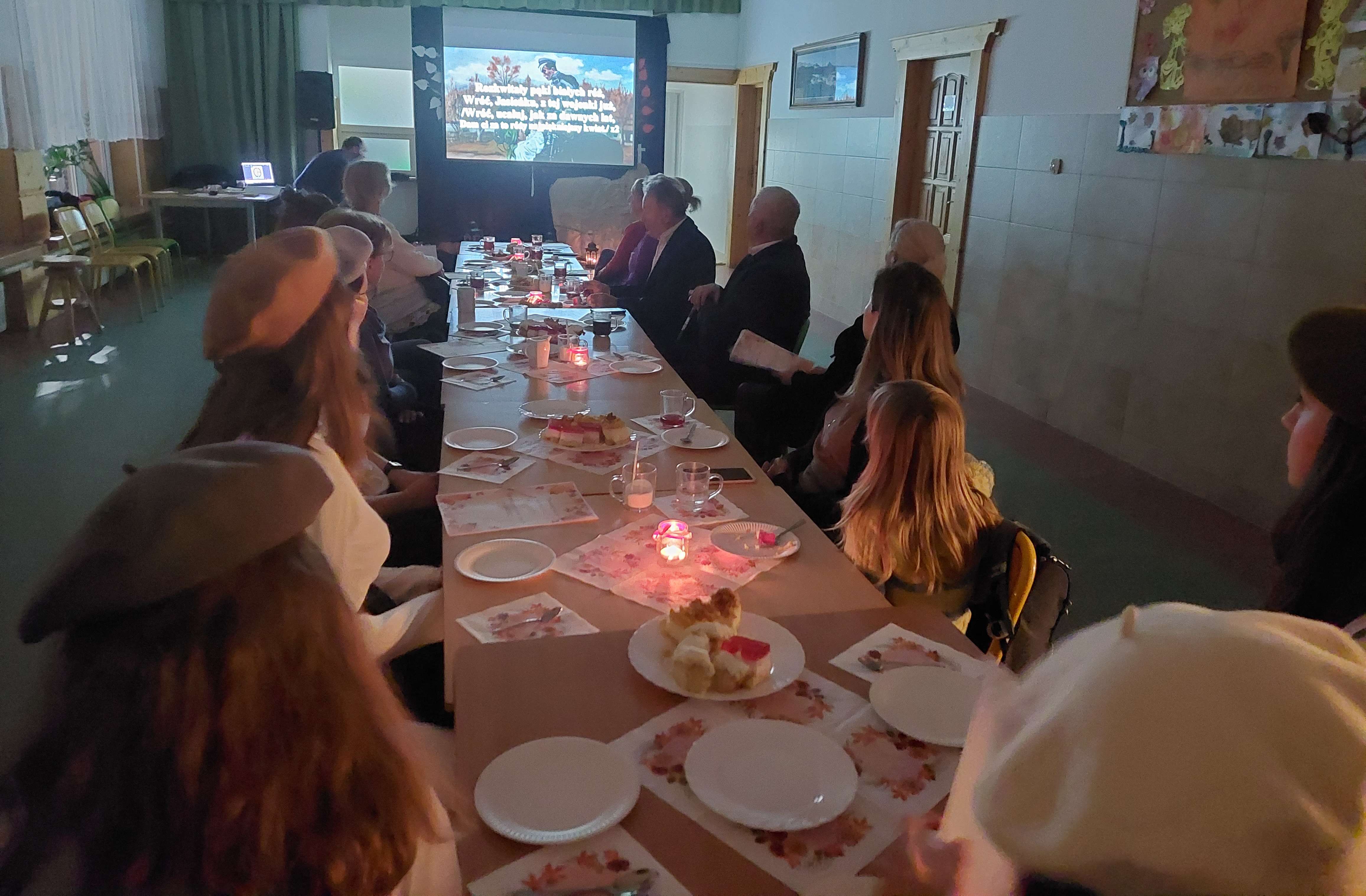 Pięknie przystrojona scena oraz blask świec wprawił świętujących w przyjemny klimat. Po części artystycznej, przyszedł czas na ciepłe słowa, wspomnienia oraz słodki poczęstunek. Spotkanie przebiegło w miłej i przyjaznej atmosferze.