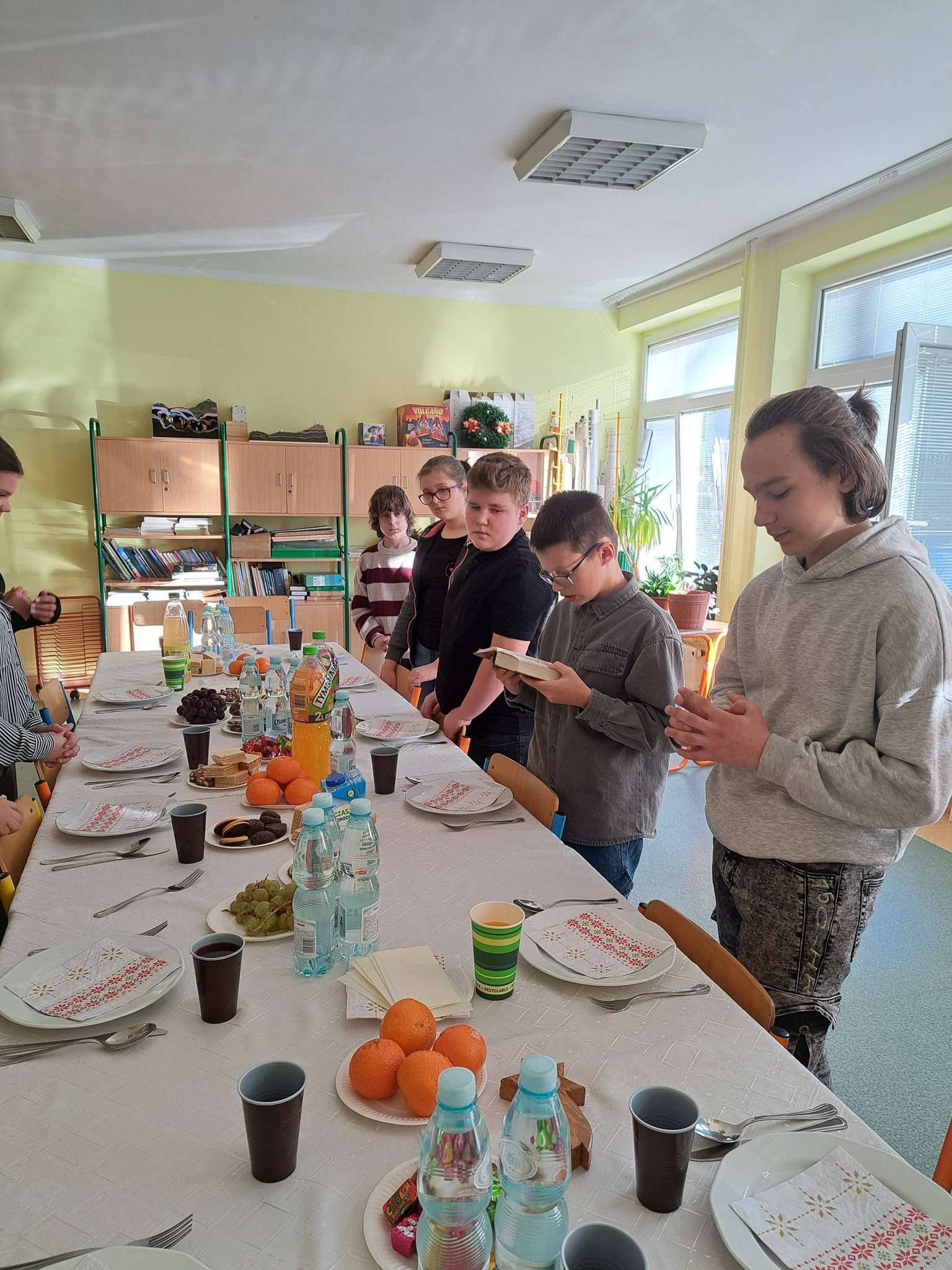 W ostatnim tygodniu przed przerwą świąteczną w naszej szkole panowała wyjątkowa, bożonarodzeniowa atmosfera. Uczniowie wraz z wychowawcami i rodzicami spotkali się na klasowych wigiliach – nie zabrakło wspólnego śpiewania kolęd, składania życzeń oraz tradycyjnego łamania się opłatkiem.
