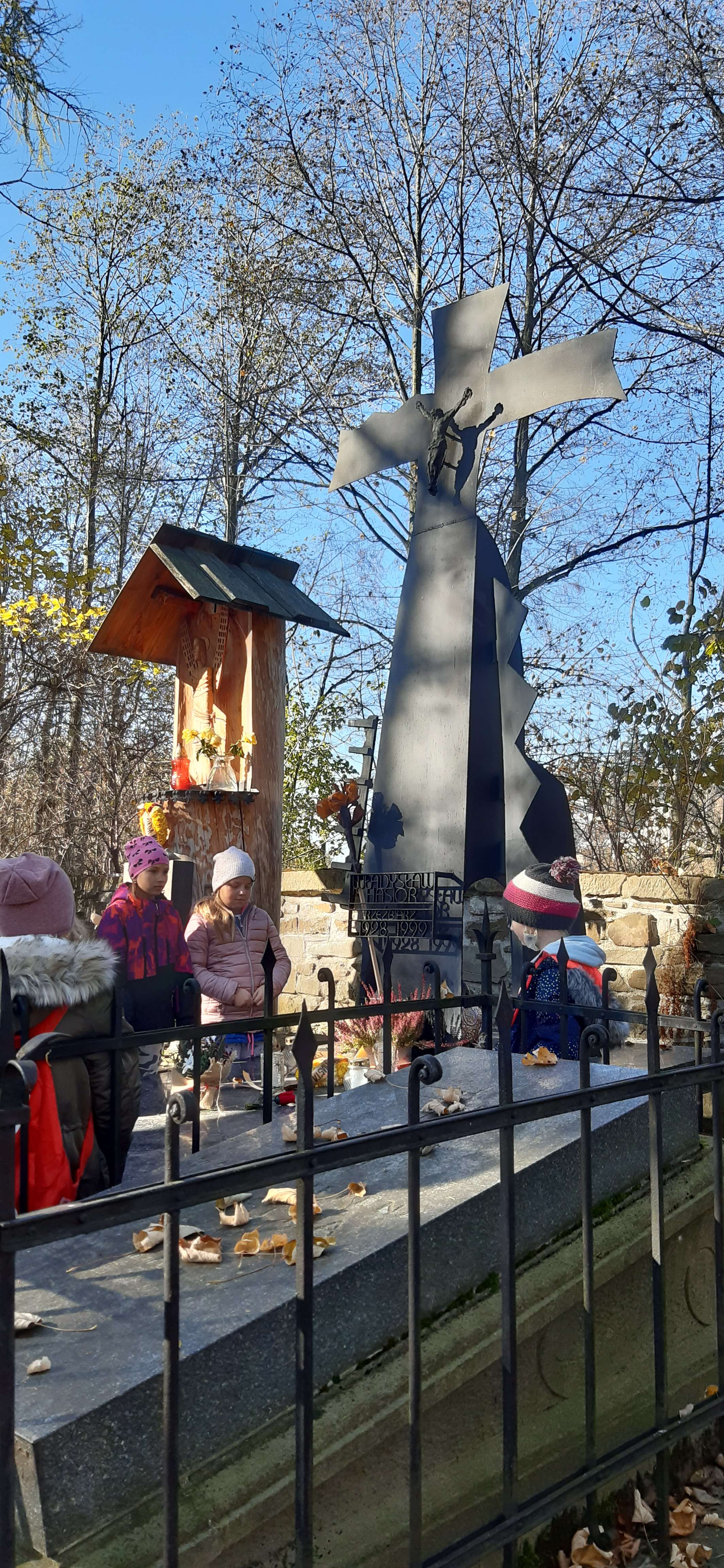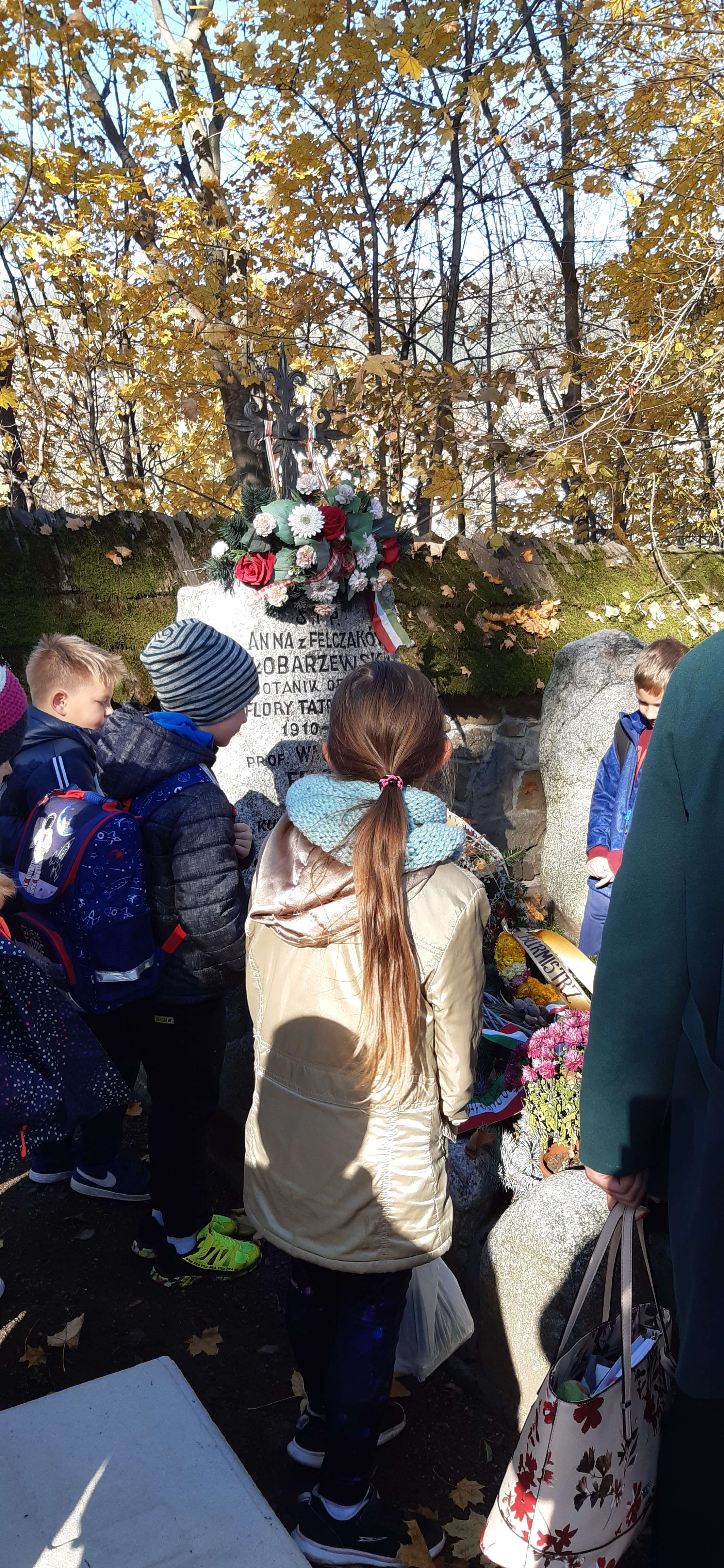 Dnia 29. 10. 2021 uczniowie klasy I i III odwiedzili cmentarz na Pęksowym Brzyzku. Najpierw uczniowie uprzątnęli grób patrona szkoły Kornela Makuszyńskiego, złożyli wiązankę i zapalili znicze. Dzieci zwróciły uwagę na nagrobki, które są o wiele skromniejsze, zrobione z drewna, metalu i kamienia i zapaliły znicze na grobach zaniedbanych. W taki sposób oddały hołd ludziom, którzy bardzo wiele zrobili dla Zakopanego, dla Tatr, dla Podhala. Jednocześnie była to dobra okazja, aby dzieci poznały nazwiska osób zasłużonych dla rozwoju Zakopanego, a spoczywających na najstarszym zakopiańskim cmentarzu.