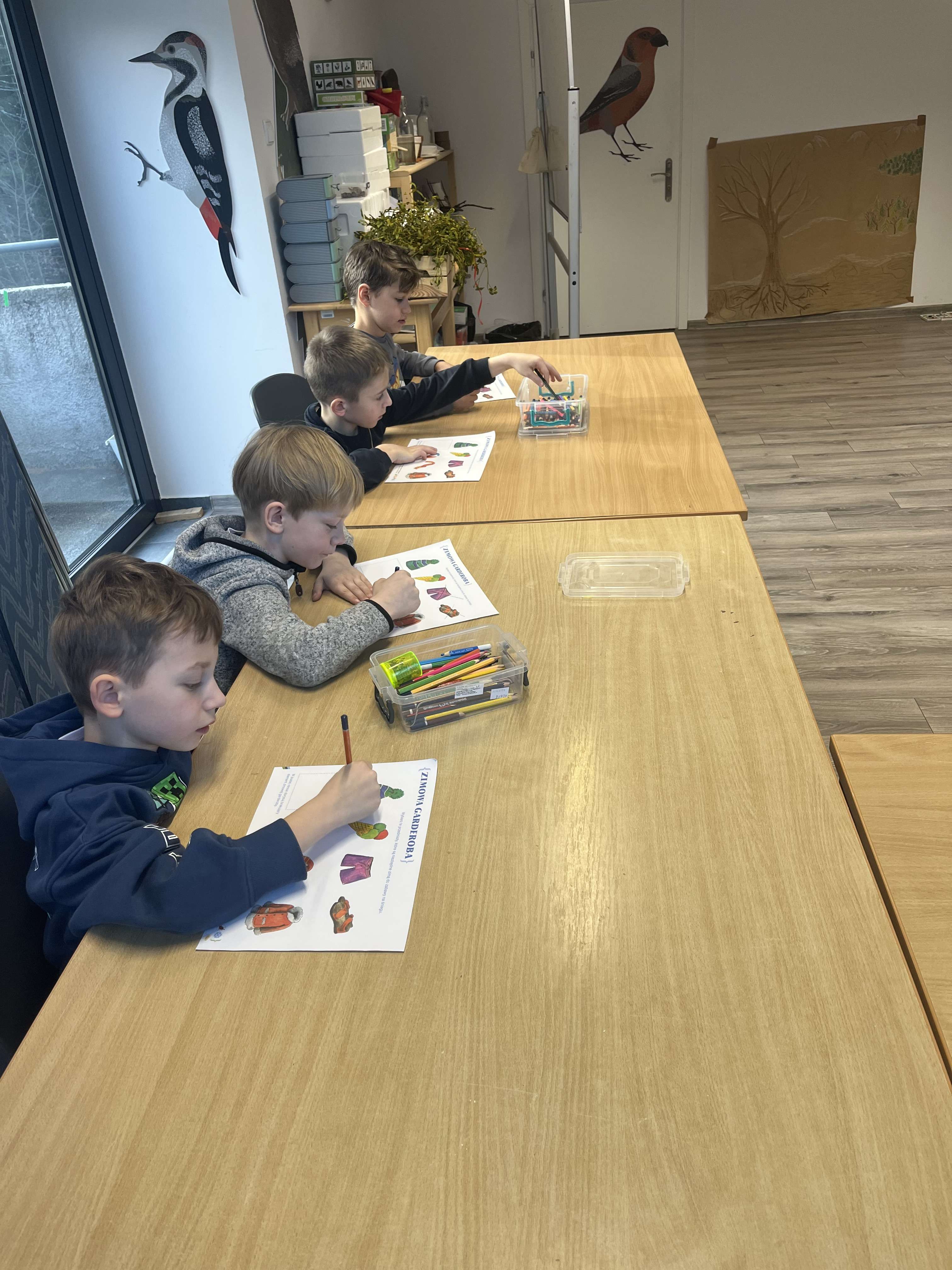 Podczas zajęć edukacyjnych dzieci dowiedziały się, jak mieszkańcy lasów i gór radzą sobie w trudnych, zimowych warunkach. Uczniowie z dużym zainteresowaniem słuchali ciekawostek o zapadaniu w sen zimowy, gromadzeniu zapasów oraz zmianach zachodzących w przyrodzie.