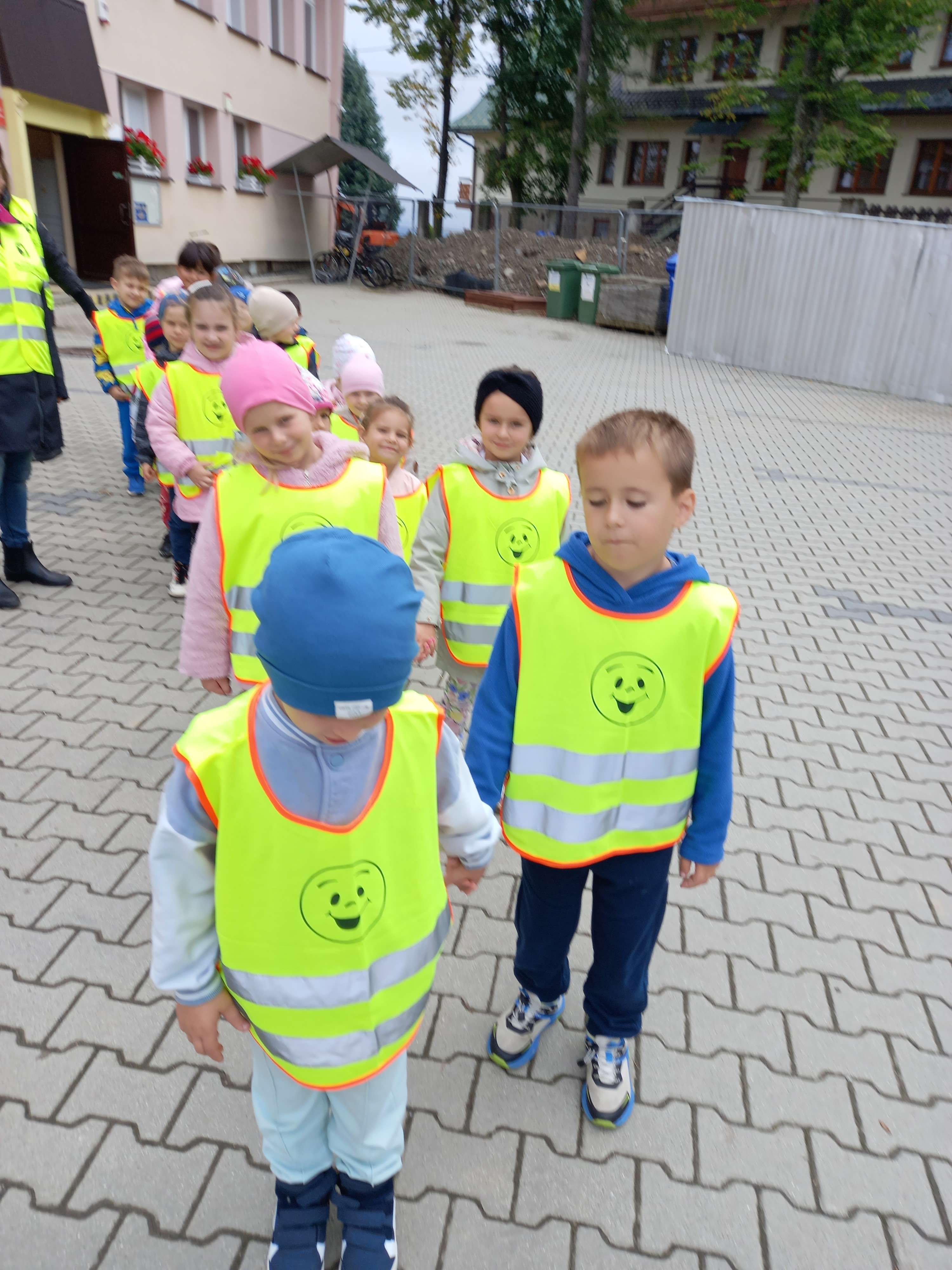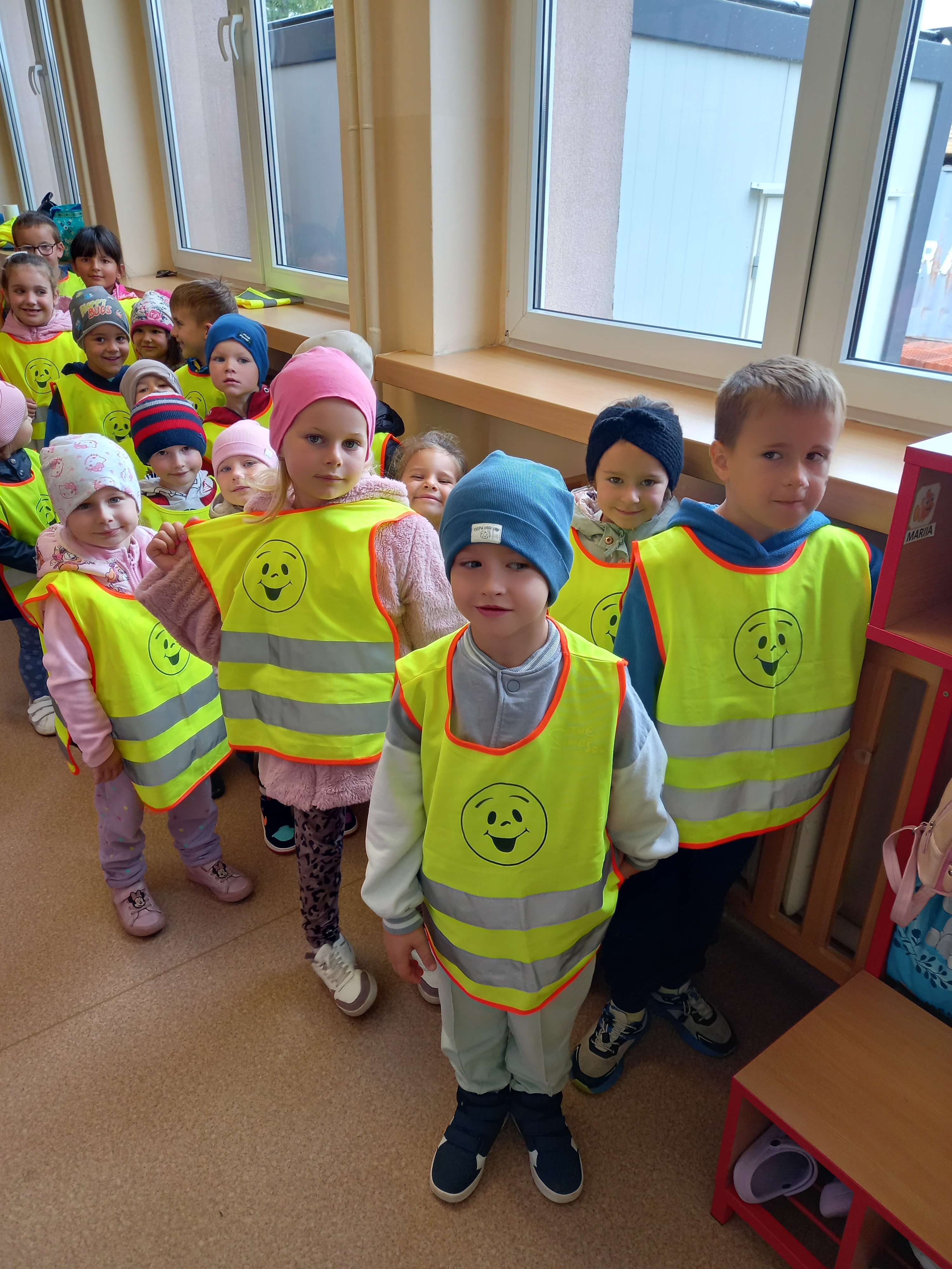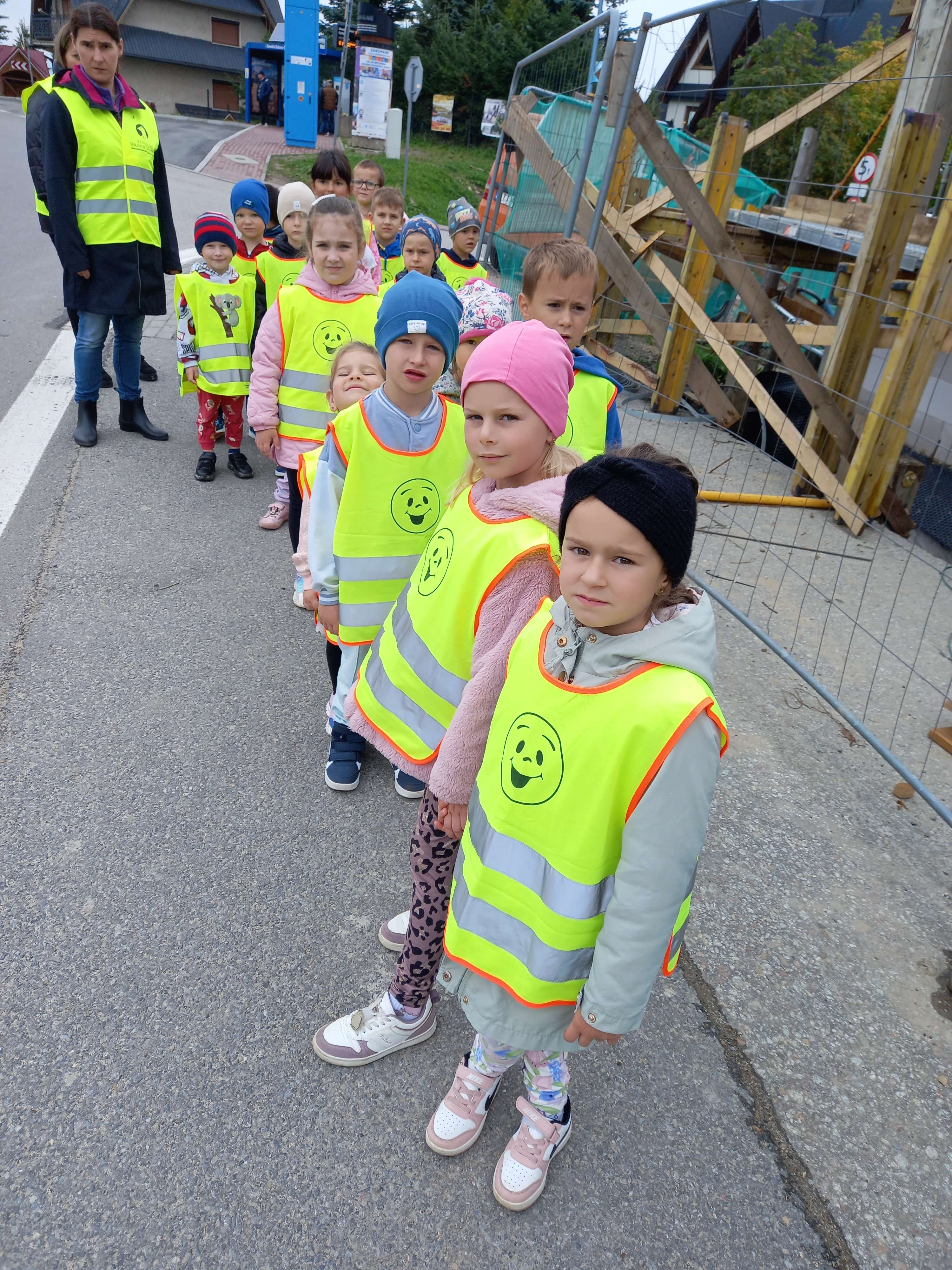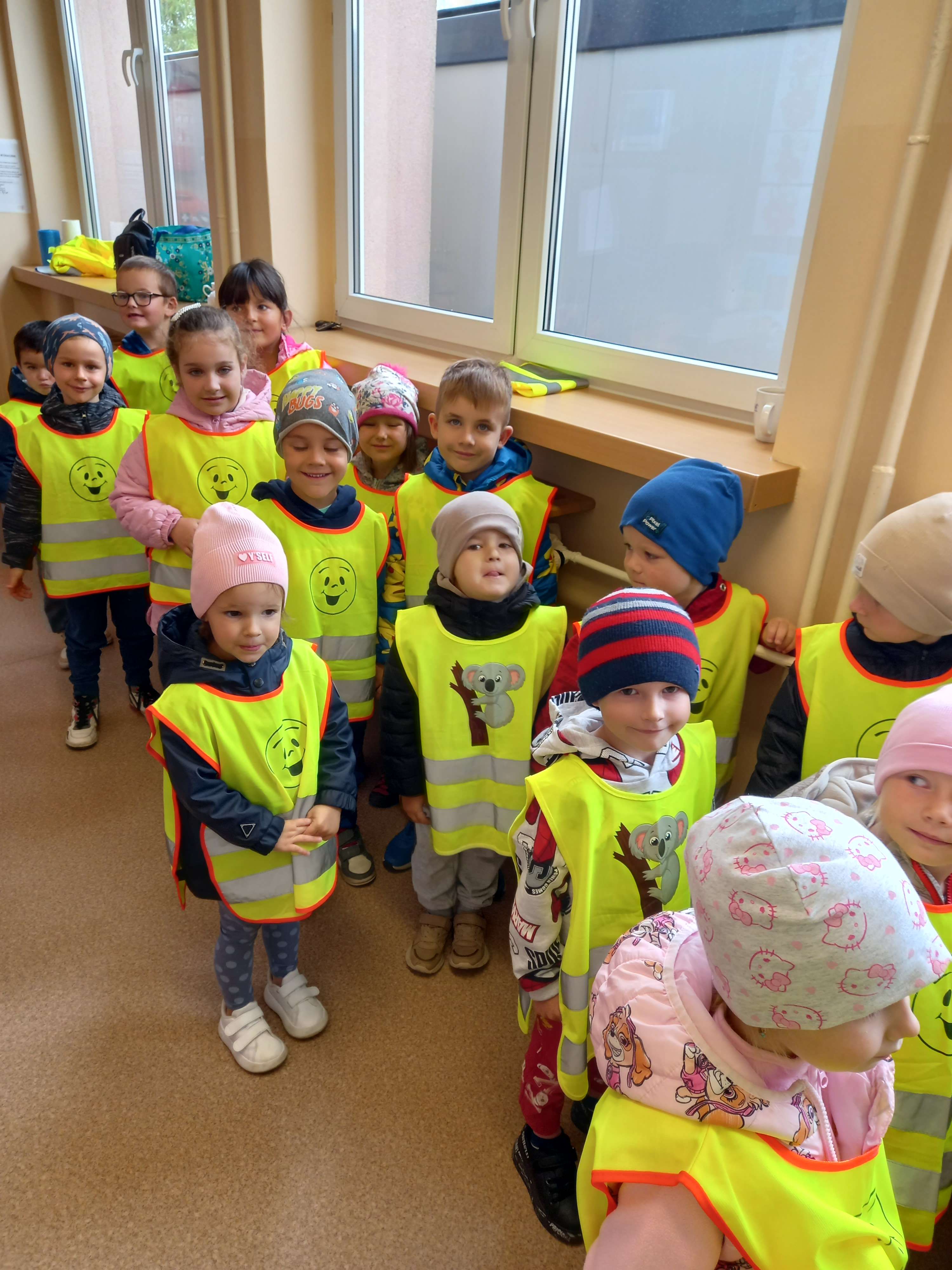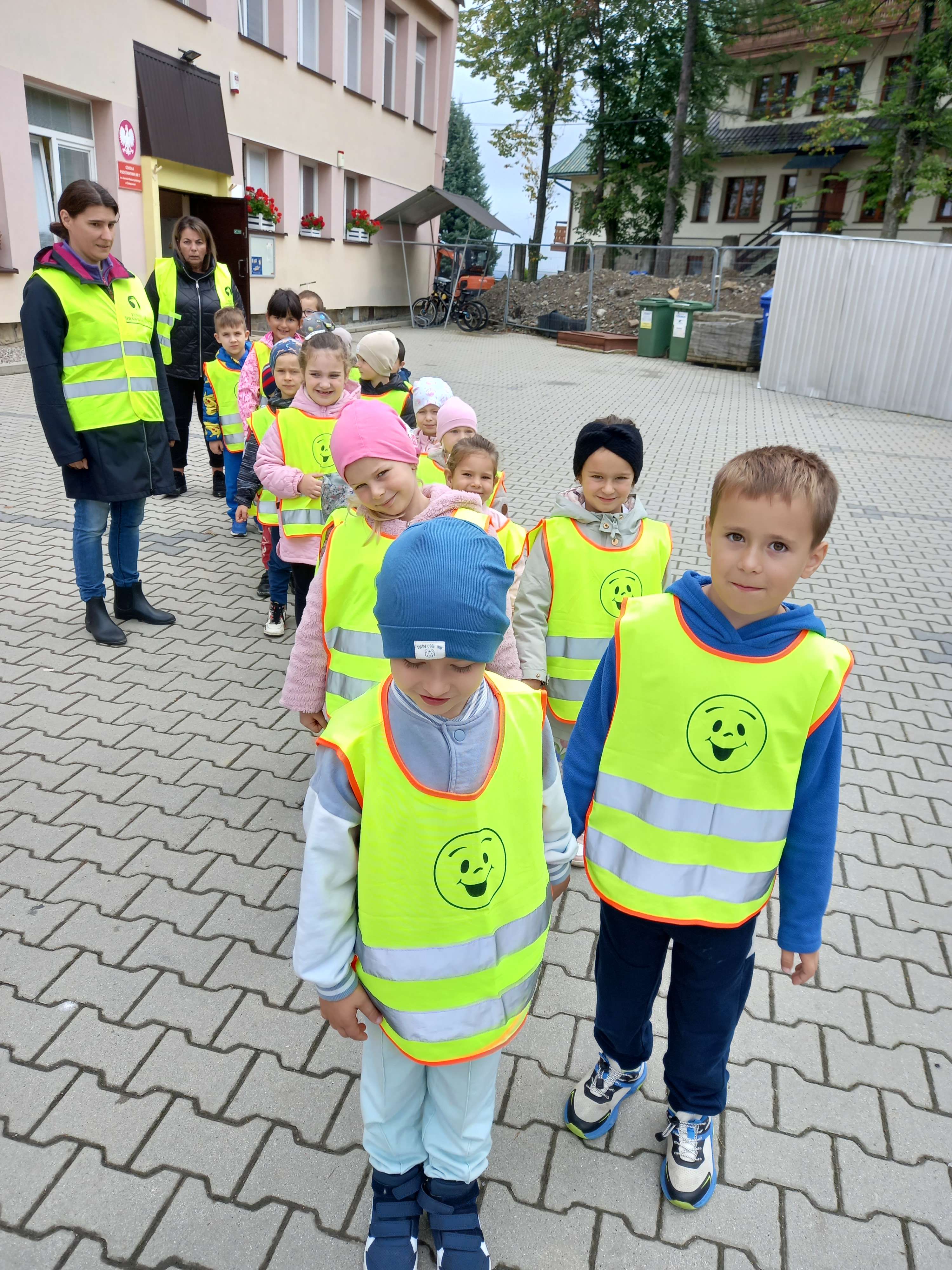 W dniu 26 września dzieci z oddziału przedszkolnego wybrały się na przejście dla pieszych. Celem wyjścia było nauczenie dzieci prawidłowego i bezpiecznego przechodzenia przez przejście dla pieszych. Zanim wyruszyliśmy z przedszkola, dzieci uczestniczyły w krótkiej pogadance na temat zasad ruchu drogowego. Ubrane w kamizelki odblaskowe i trzymając się za ręce parami, przedszkolaki ruszyły pod opieką wychowawców na pobliskie przejście dla pieszych. Po powrocie do przedszkola, dzieci chętnie dzieliły się swoimi wrażeniami i rysowały obrazki przedstawiające bezpieczne przechodzenie przez jezdnię.
