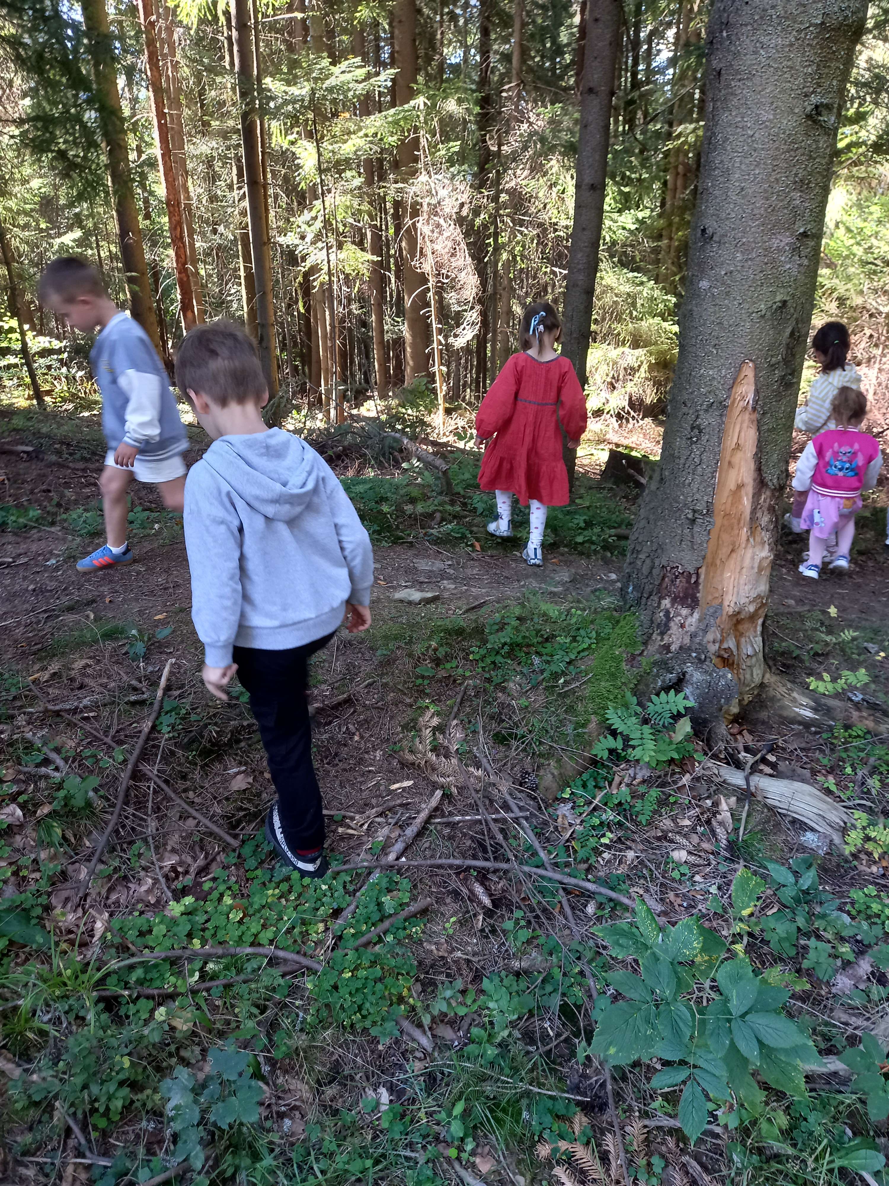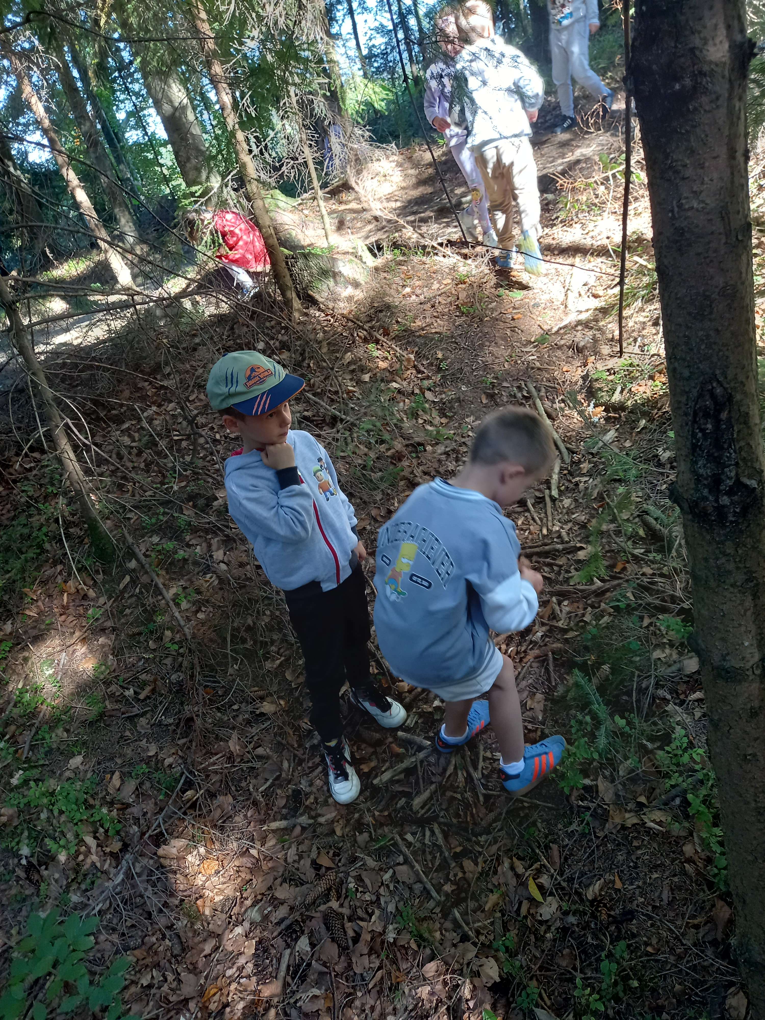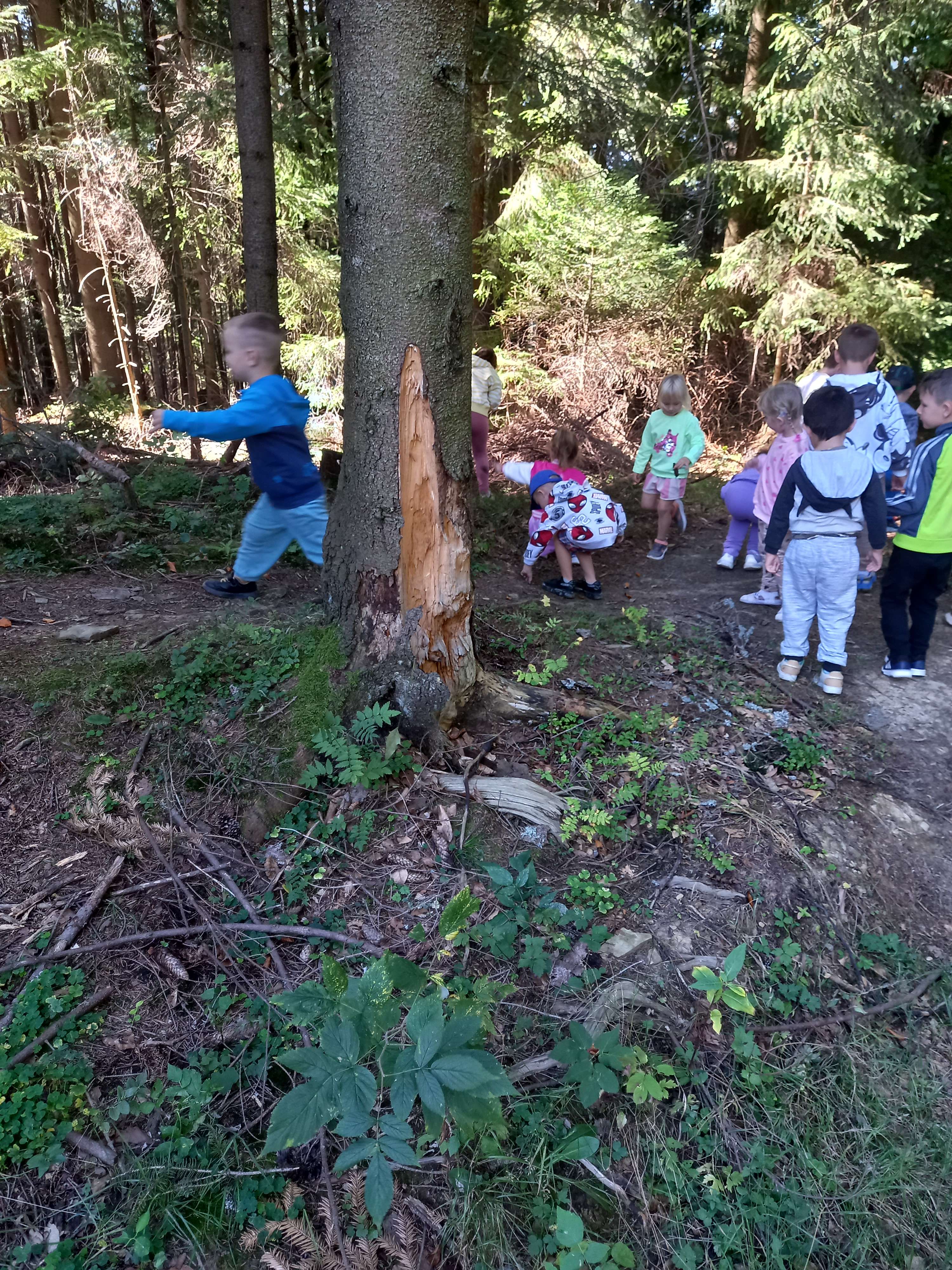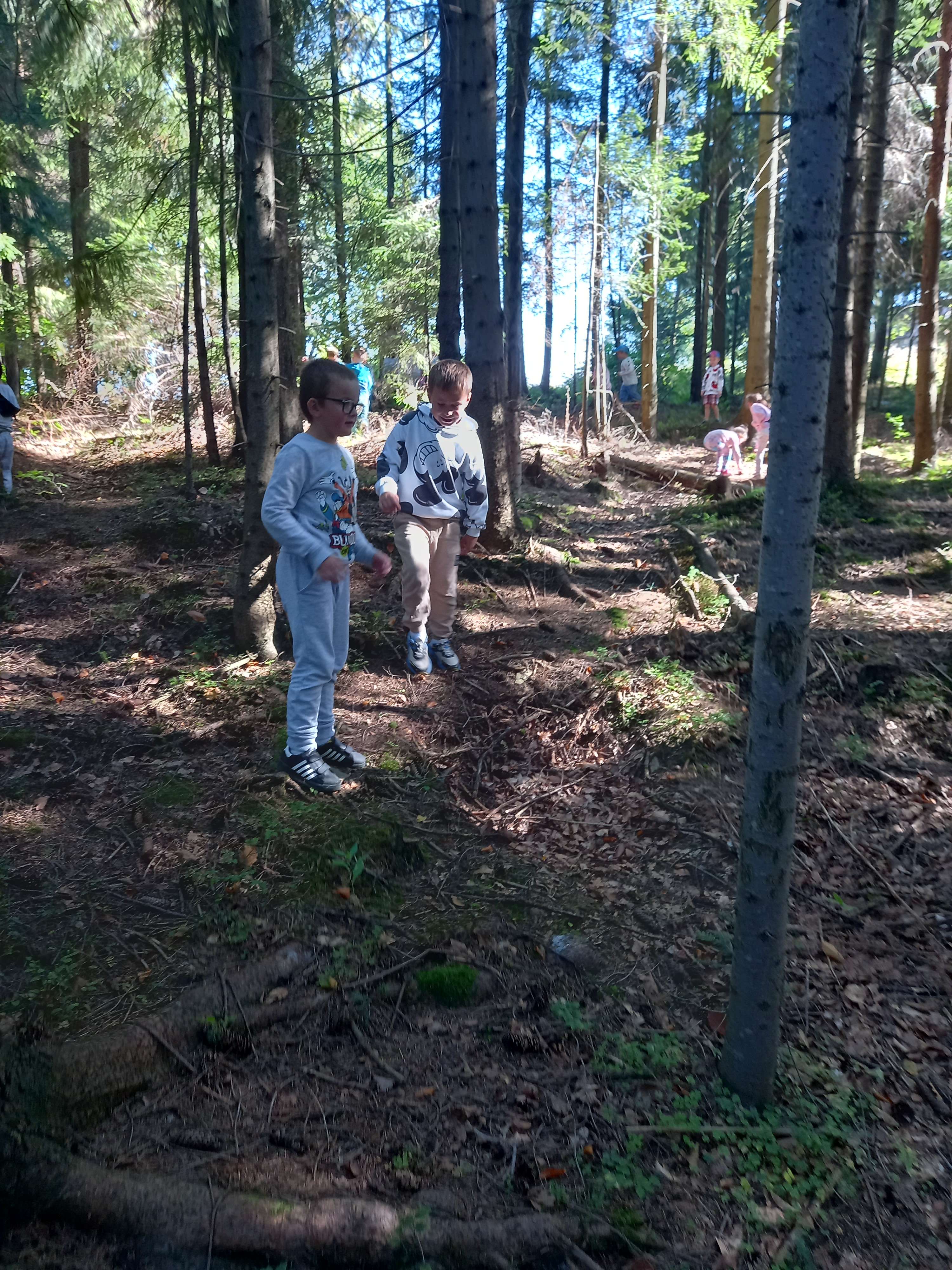 W słoneczny, wrześniowy dzień grupa naszych przedszkolaków wyruszyła na wyjątkowy spacer do pobliskiego lasu. Celem wyjścia było odkrywanie uroków jesieni i zbieranie jej „ skarbów”- kolorowych liści, szyszek. Dzieci z ogromną ciekawością szukały skarbów. Spacer był nie tylko okazją do zbierania przyrodniczych skarbów, ale również świetną lekcją przyrody. Dzieci uczyły się rozpoznawać gatunki drzew, dowiadywały się, dlaczego liście zmieniają kolor oraz jak zwierzęta przygotowują się do zimy.