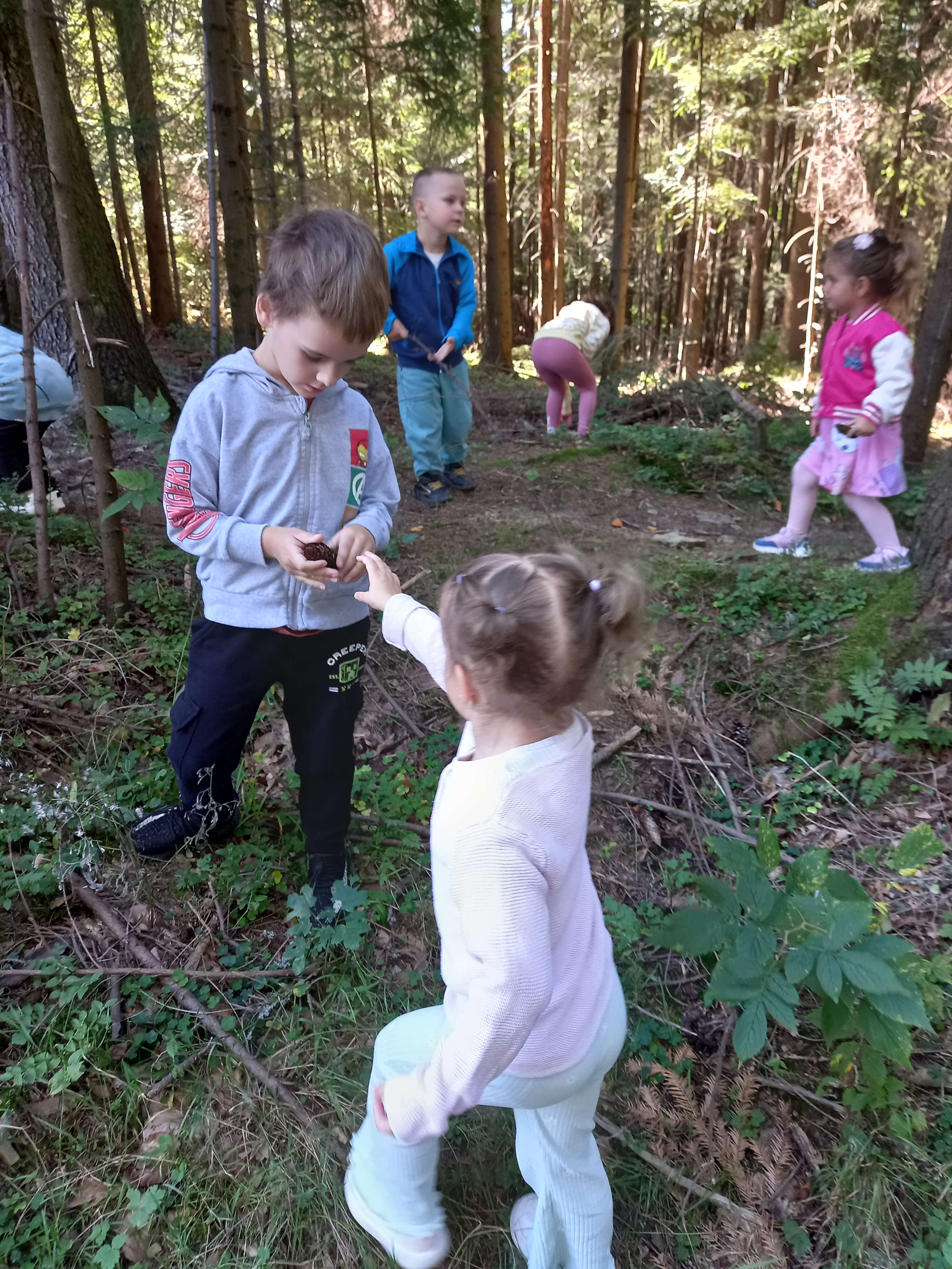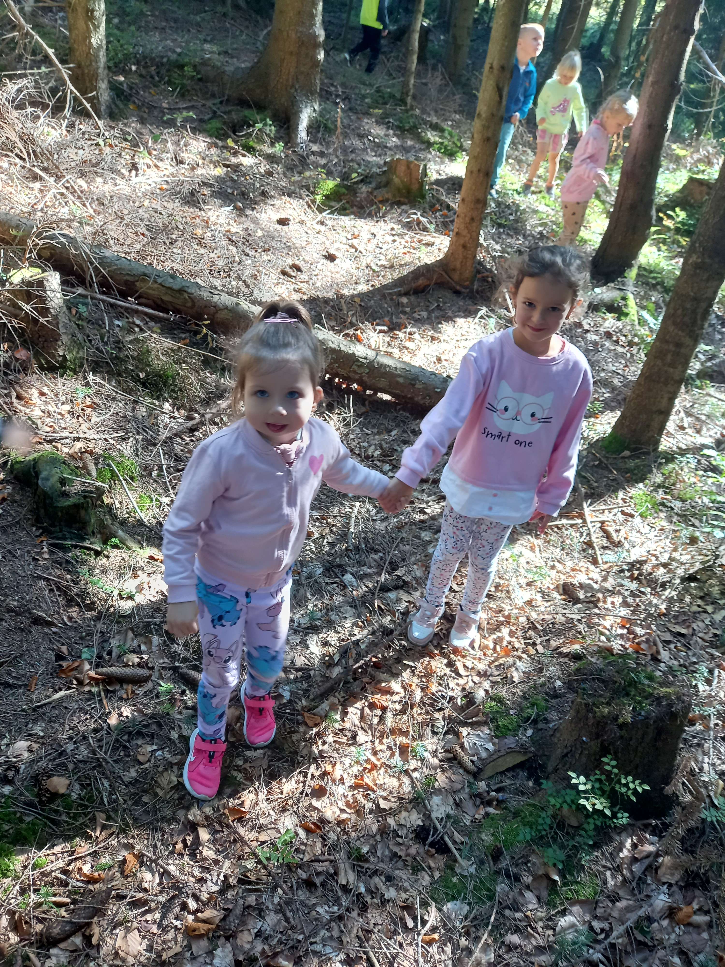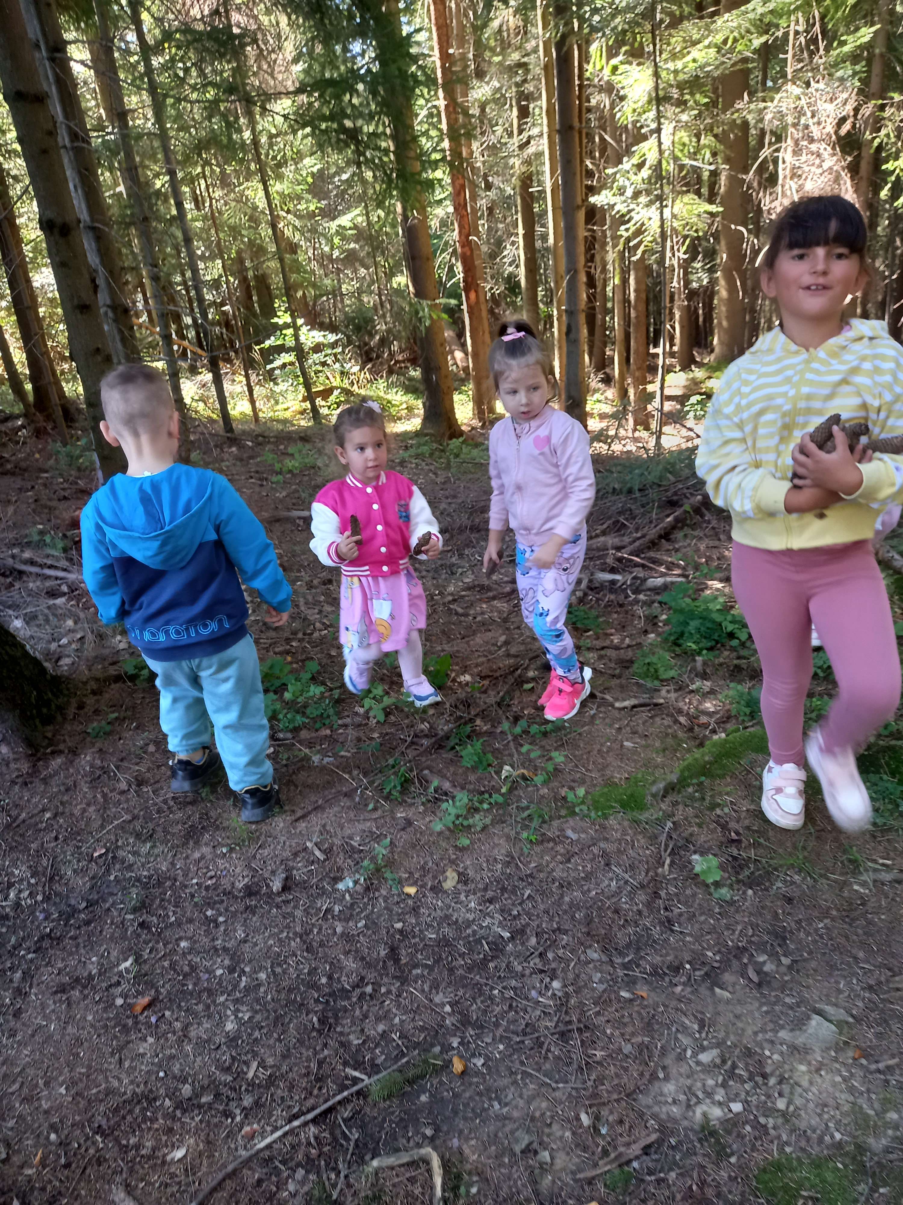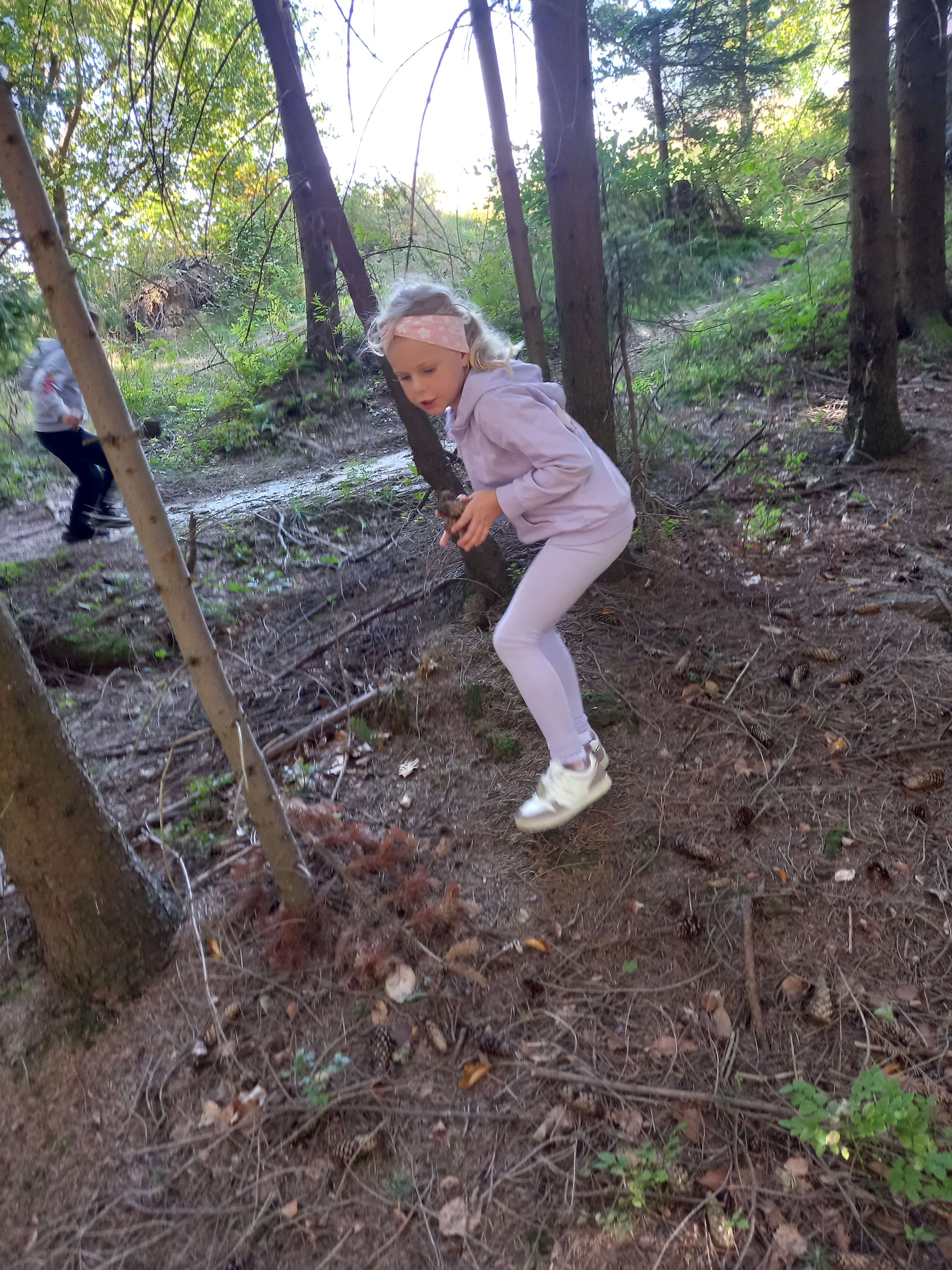 W słoneczny, wrześniowy dzień grupa naszych przedszkolaków wyruszyła na wyjątkowy spacer do pobliskiego lasu. Celem wyjścia było odkrywanie uroków jesieni i zbieranie jej „ skarbów”- kolorowych liści, szyszek. Dzieci z ogromną ciekawością szukały skarbów. Spacer był nie tylko okazją do zbierania przyrodniczych skarbów, ale również świetną lekcją przyrody. Dzieci uczyły się rozpoznawać gatunki drzew, dowiadywały się, dlaczego liście zmieniają kolor oraz jak zwierzęta przygotowują się do zimy.