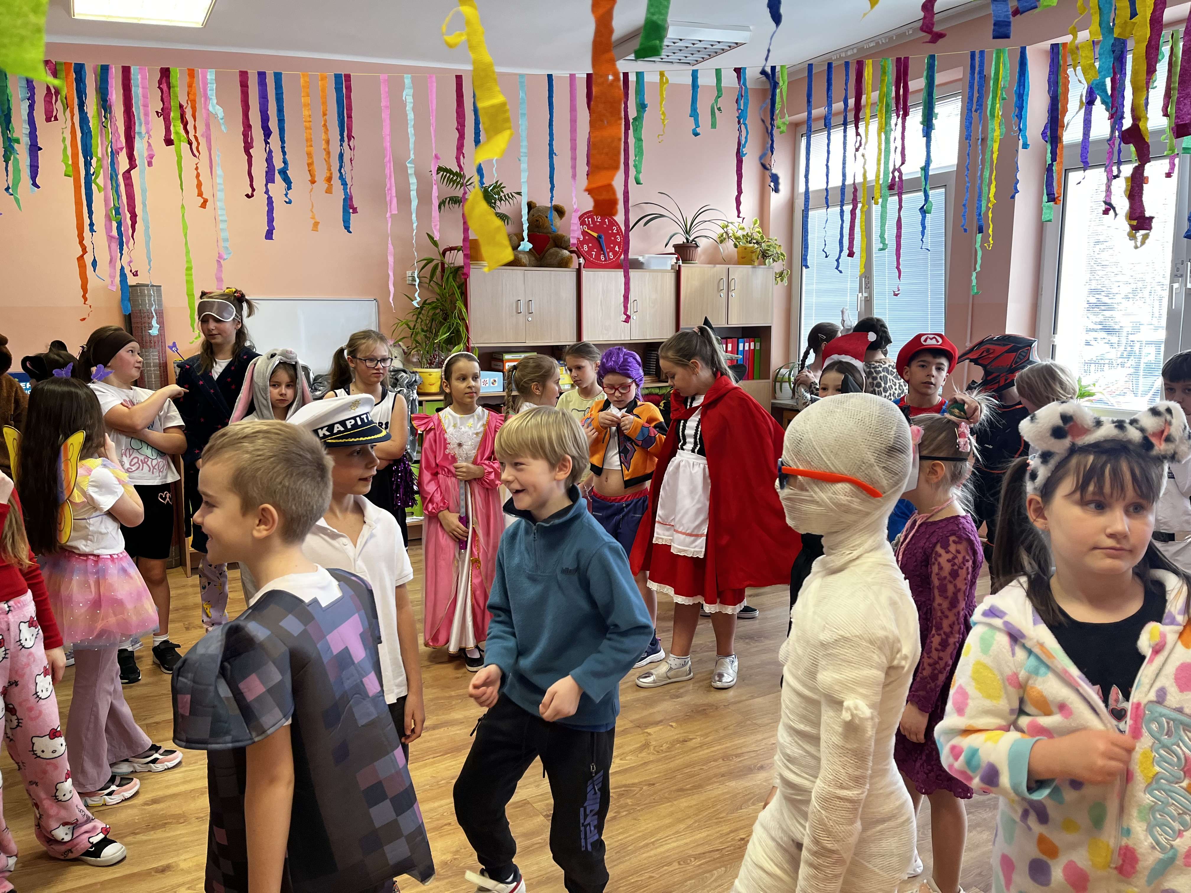 17 lutego w naszej szkole odbyła się długo wyczekiwana zabawa karnawałowa dla uczniów klas 1–3. Tego dnia nasze sale lekcyjne zamieniły się w kolorową, pełną radości przestrzeń, w której nie brakowało muzyki, uśmiechów i wspaniałej energii.