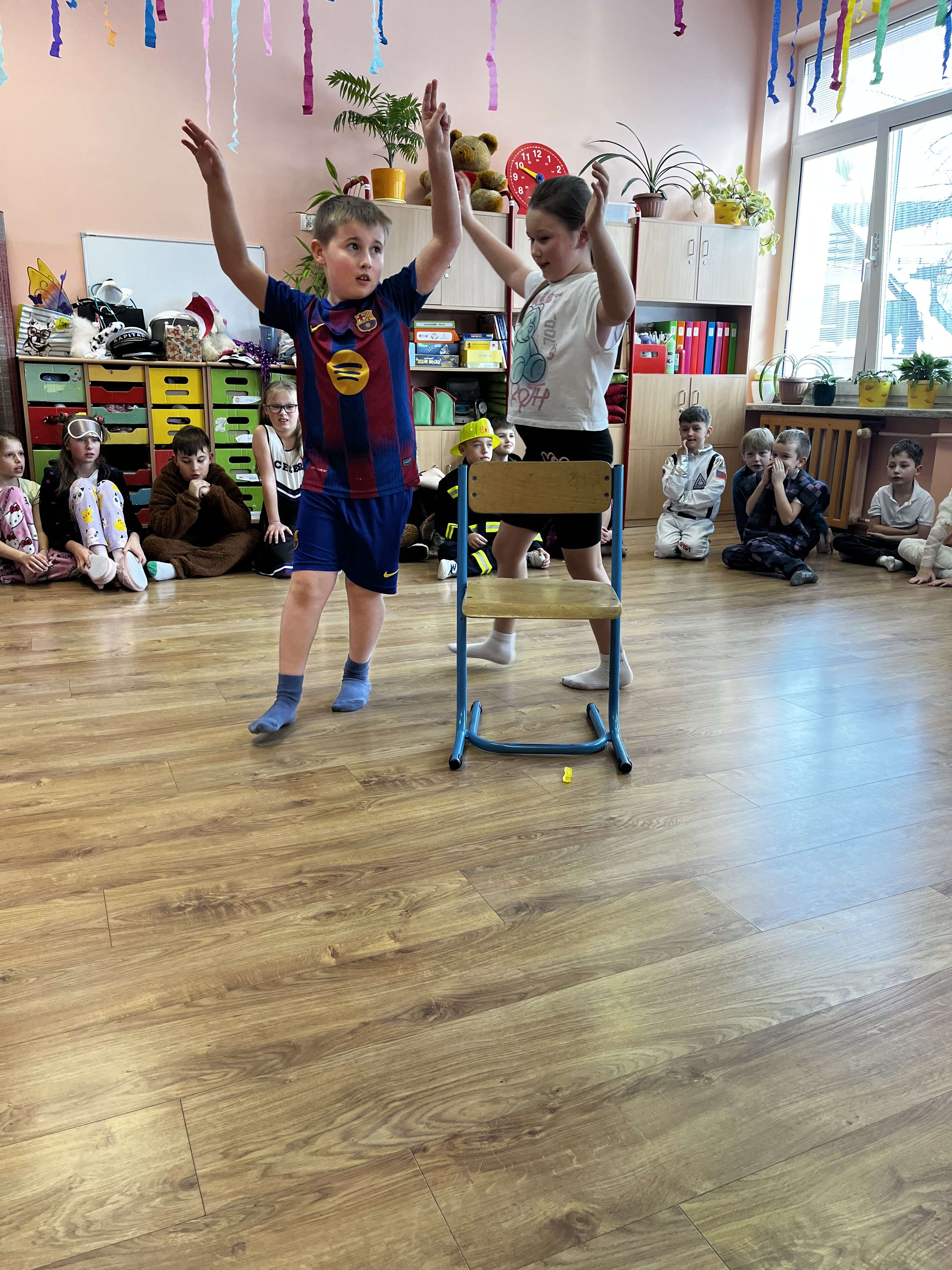 Podczas zabawy nie zabrakło wspólnych tańców przy ulubionej muzyce oraz licznych konkursów i zabaw integracyjnych. Uczniowie z ogromnym zaangażowaniem brali udział w przygotowanych atrakcjach, wykazując się sprytem, kreatywnością i świetnym poczuciem humoru.