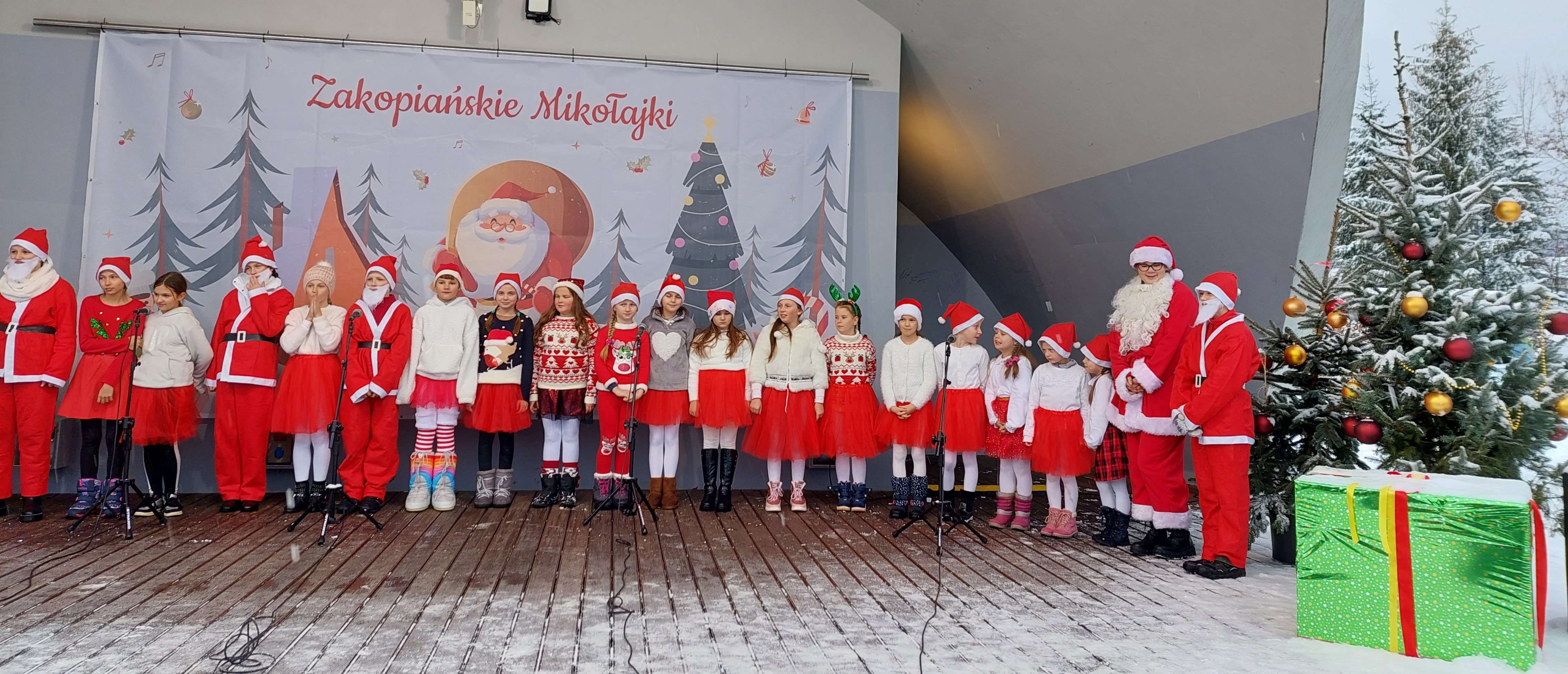 Jak co roku do naszego miasta przyjeżdża Mikołaj. W tym roku , w prawdziwej zimowej aurze zawitał na festyn rodzinny w Parku Miejskim im. Józefa Piłsudskiego. W tym festynie również wzięli udział uczniowie naszej szkoły. Swoim pięknym występem na scenie w muszli koncertowej stworzyli magiczny świąteczny klimat. Całego uroku dodały ich stroje mikołajkowe i stroje śnieżynek. Również nauczyciele i rodzice przygotowali kiermasz ozdób świątecznych i pysznych ciast domowego wypieku. Dziękujemy Wszystkim za zaangażowanie i udział w tym wydarzeniu.